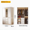 Tủ Quần Áo Gỗ Cao Su Màu Trắng Tích Hợp Cánh Kính Mờ Kệ Bên