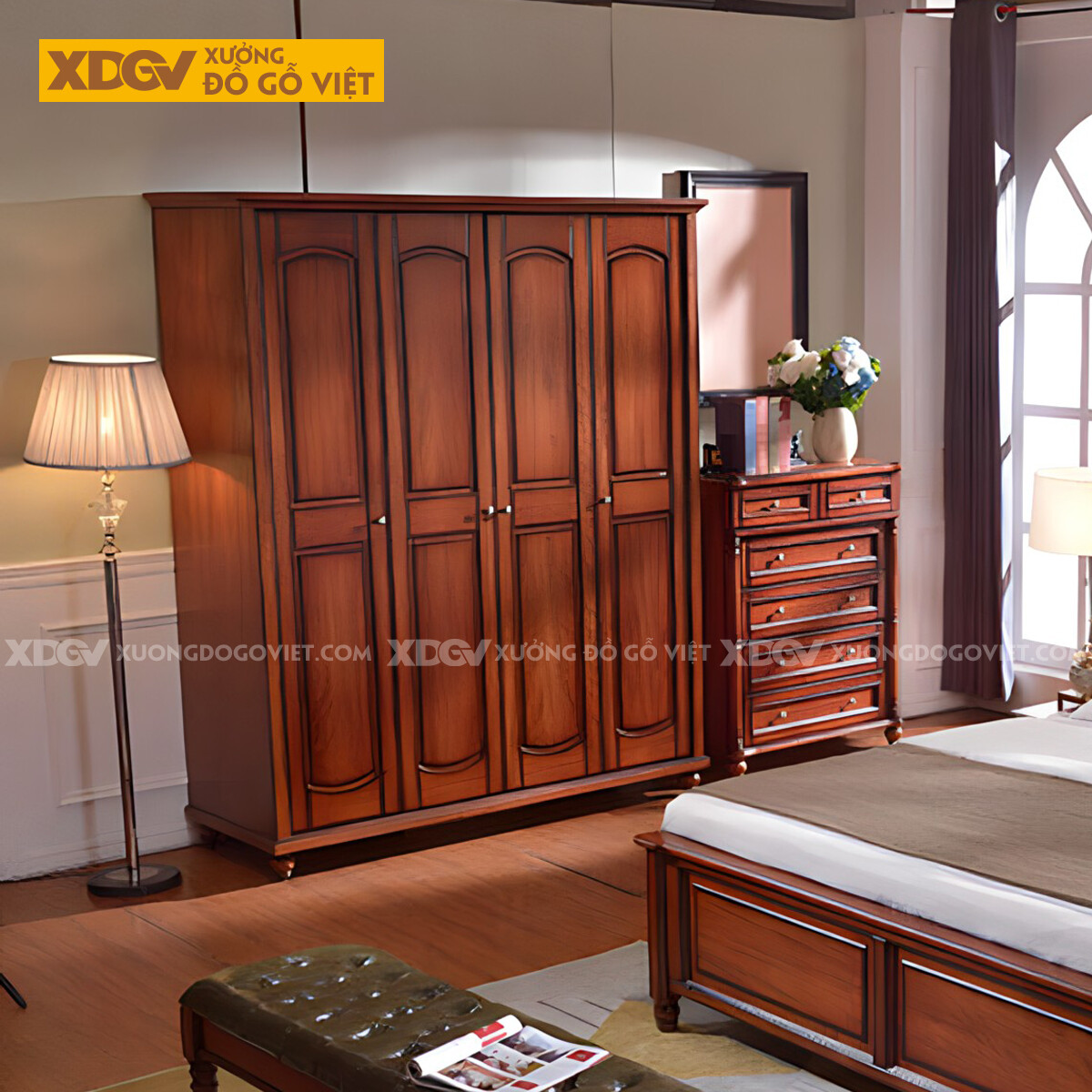 Tủ Quần Áo Gỗ Lim Tân Cổ Điển Chân Tiện 4 Cánh Soi Rãnh Cong