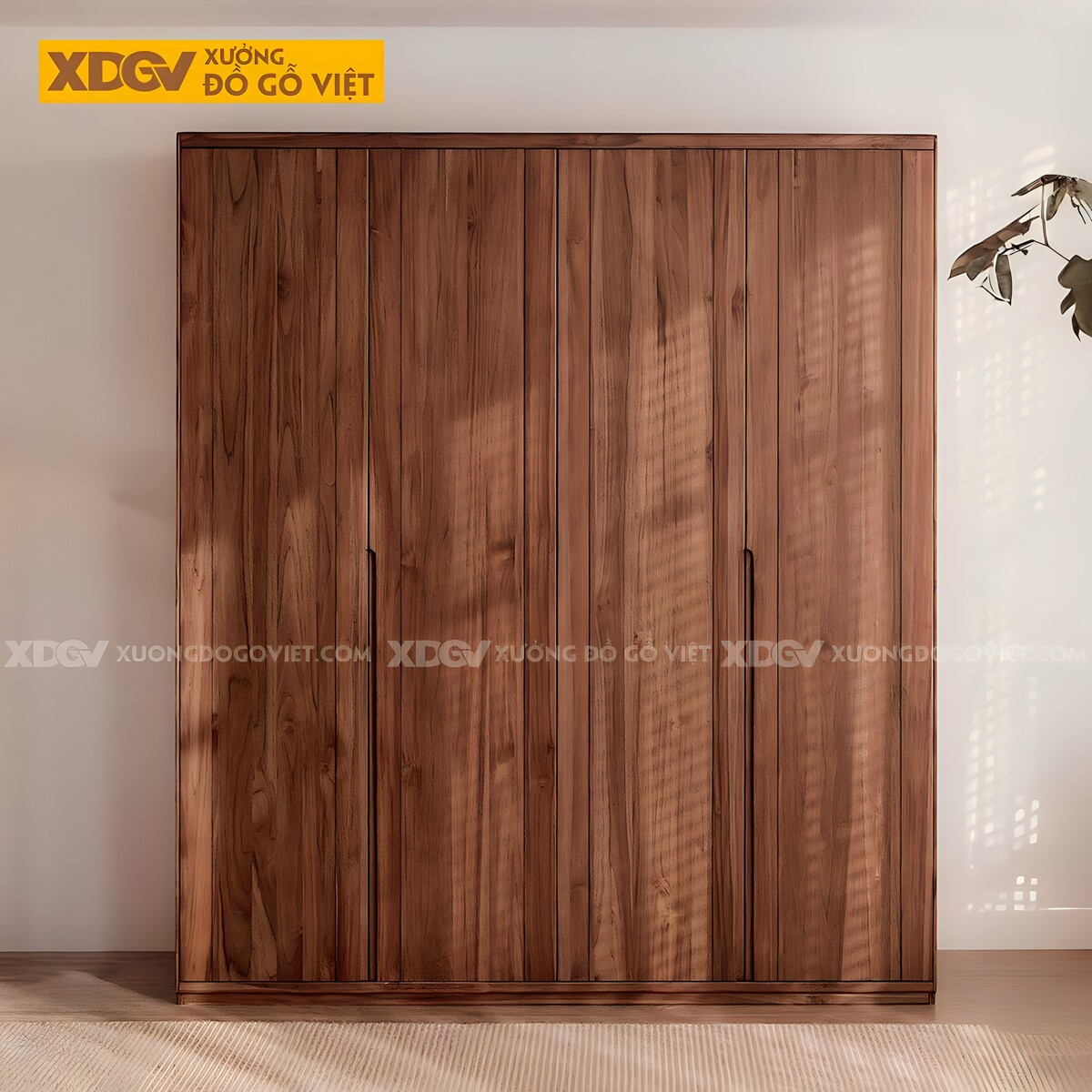 Tủ Quần Áo Óc Chó Thịt Tối Giản 4 Cánh Phẳng Tay Âm Dài