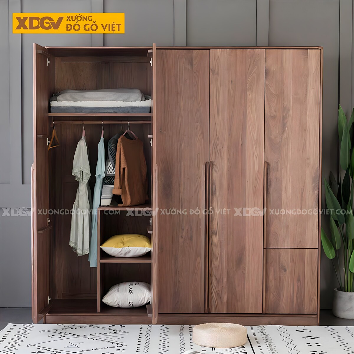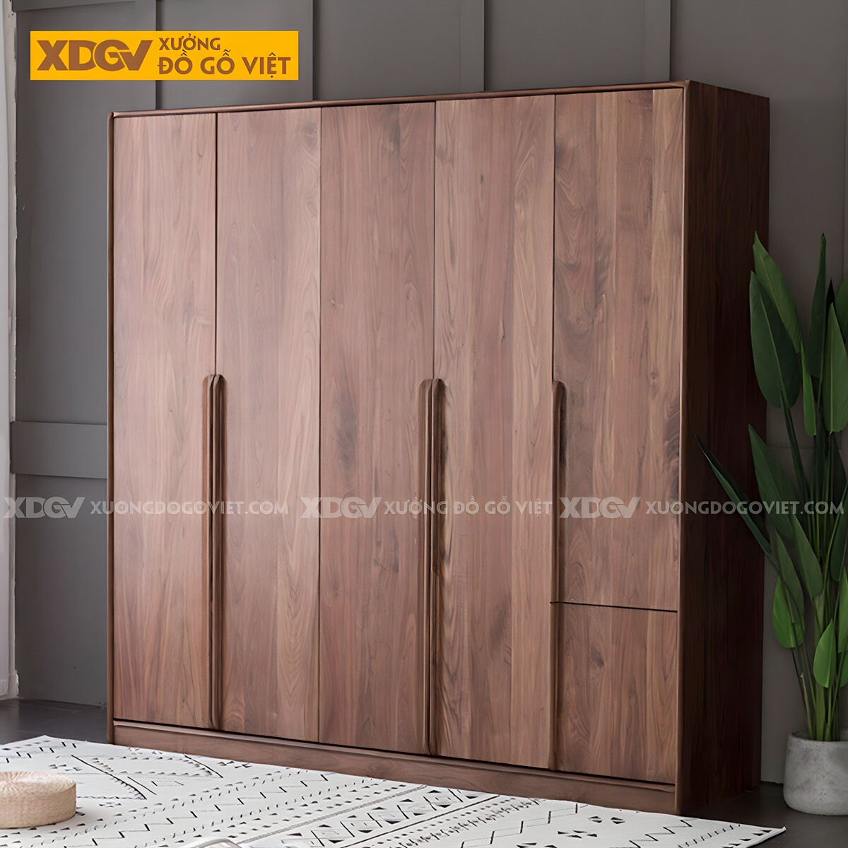 Tủ Treo Áo Gỗ Óc Chó Hiện Đại 5 Cánh Mở Tay Nắm Nổi Dài