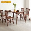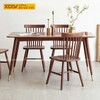Những chiếc ghế Windsor là người bạn đồng hành hoàn hảo. Với phần lưng tựa gồm nhiều nan dọc, chúng tạo ra một sự tương phản nhẹ nhàng với mặt bàn gỗ đặc, giúp tổng thể bộ sản phẩm trở nên cân bằng và thoáng đãng.