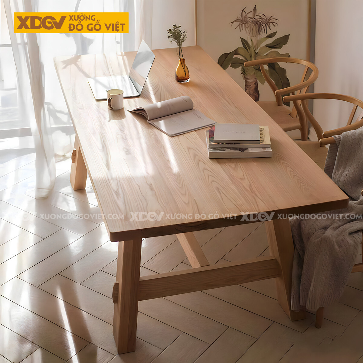 Mẫu Bàn Ăn Phòng Bếp Gỗ Sồi Mỹ Thiết Kế Chân Chéo Vững...