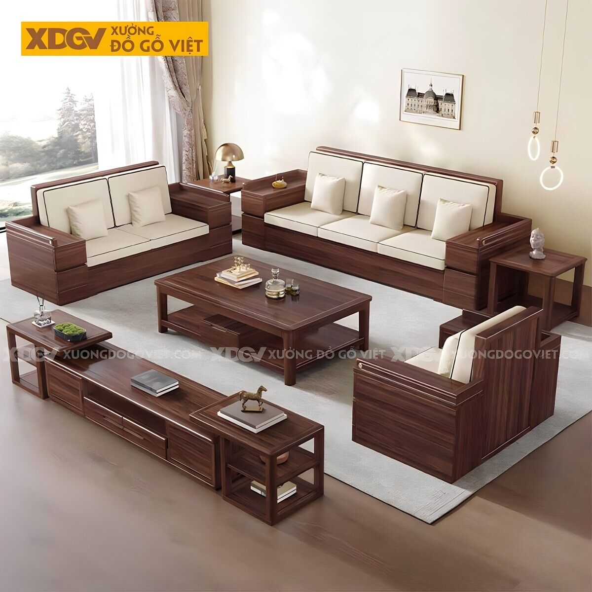 Sofa Gỗ Óc Chó Tự Nhiên Bề Thế Sang Trọng Cho Phòng Khách
