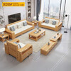 Bàn trà: Sofa gỗ luôn đi kèm bàn trà gỗ đồng bộ hoặc bàn trà mặt kính/đá để tạo sự cân bằng về không gian.