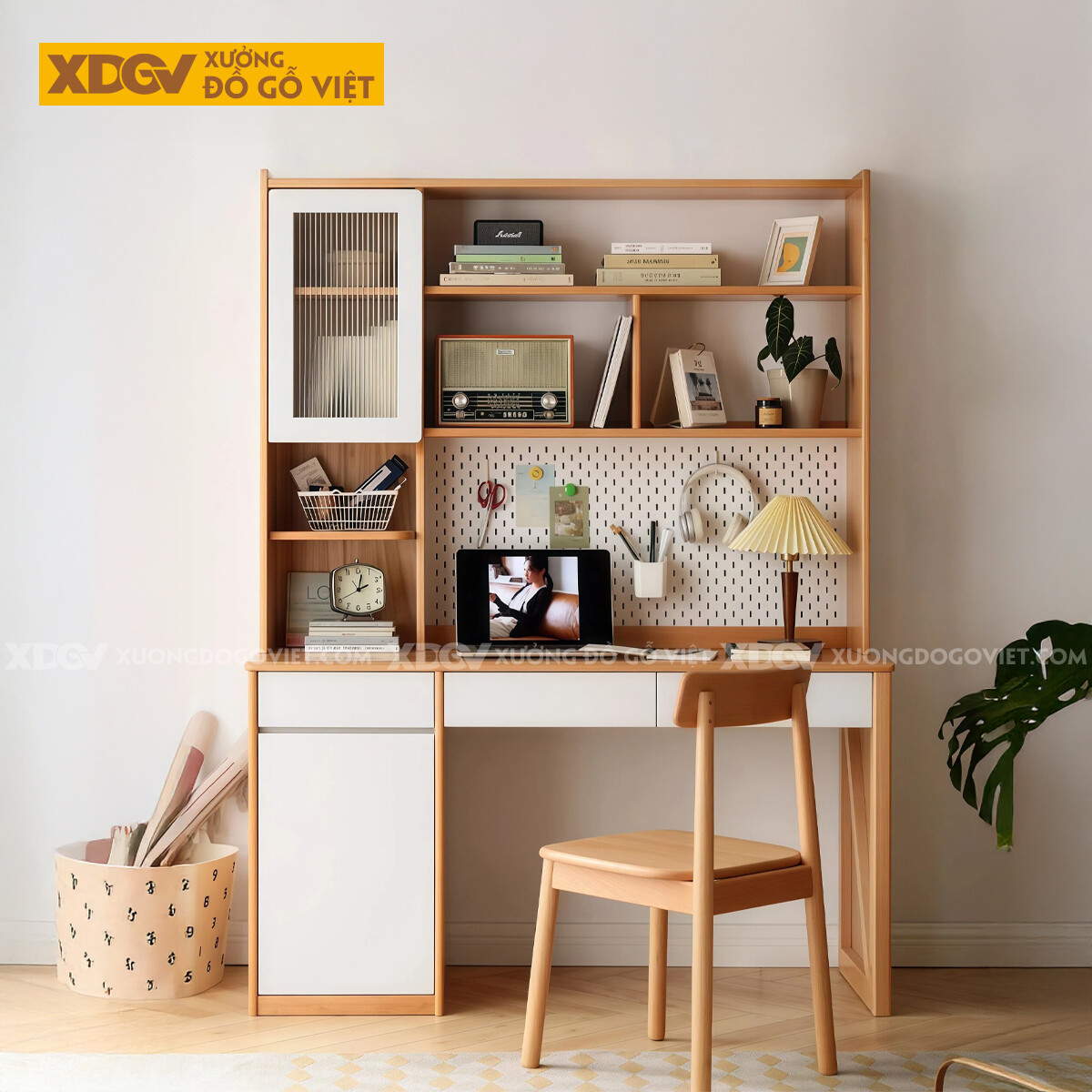 Bộ Bàn Học Liền Giá Sách Gỗ Sồi Mỹ Phong Cách Nhật Bản