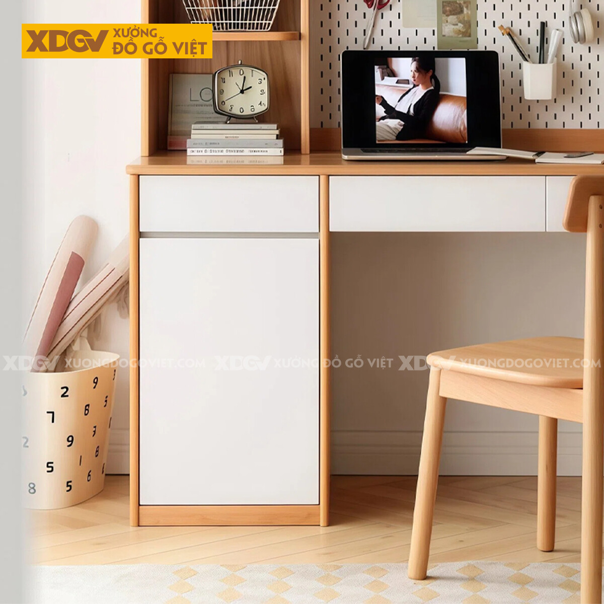 Bàn Làm Việc Gỗ Veneer Sồi Kèm Tủ Sách Và Ngăn Kéo Tiện Ích