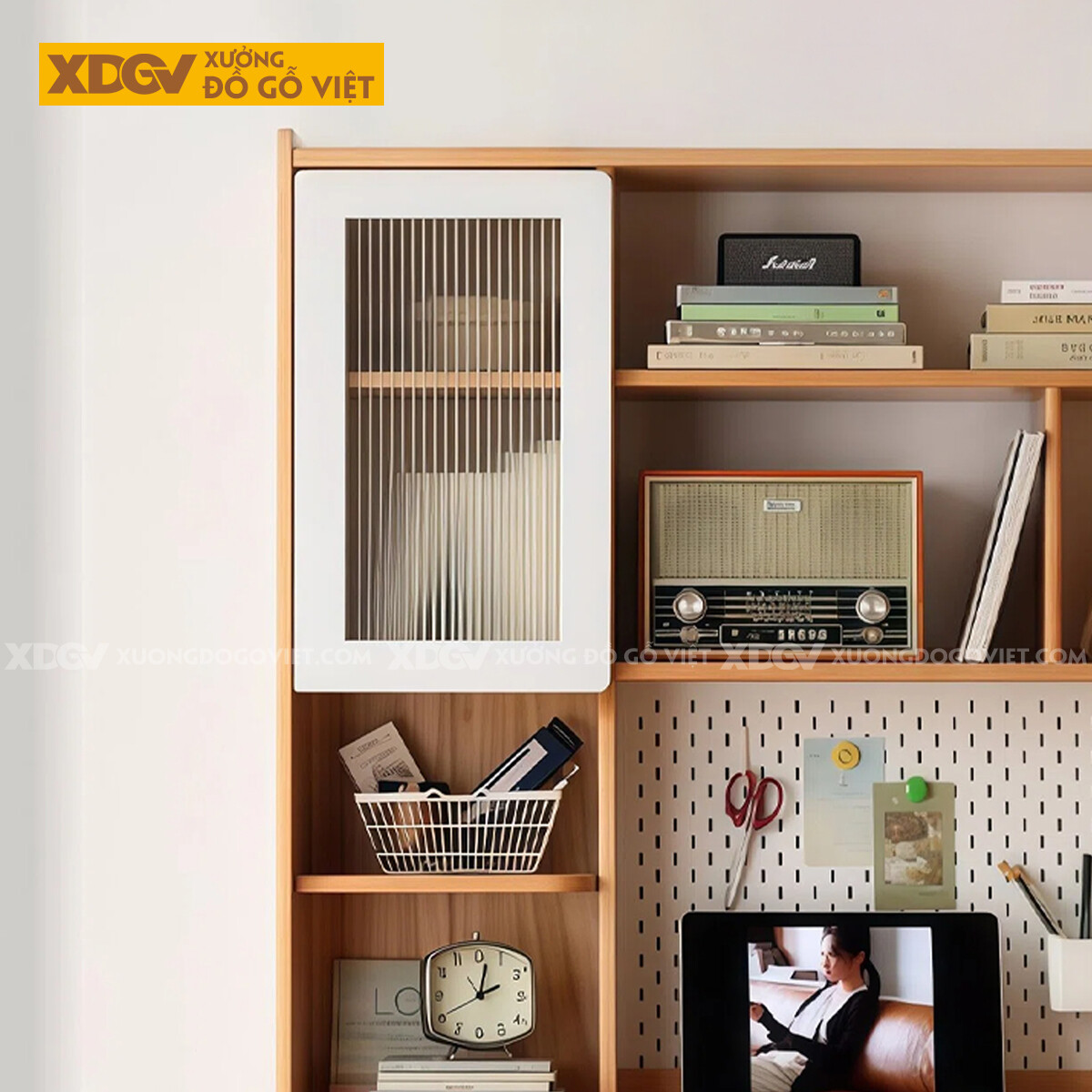 Bàn Làm Việc Góc L Kết Hợp Tủ Kính Tối Ưu Không Gian