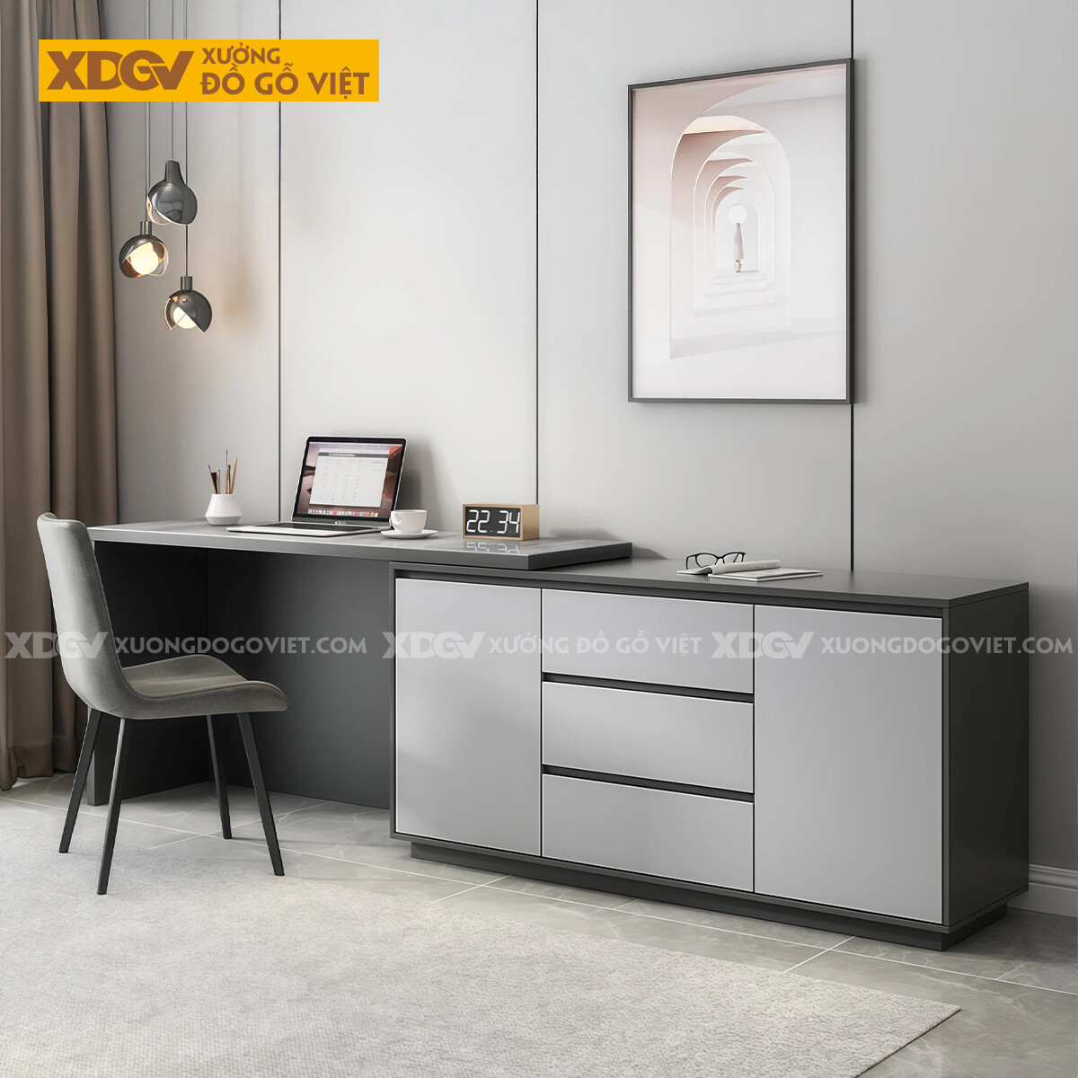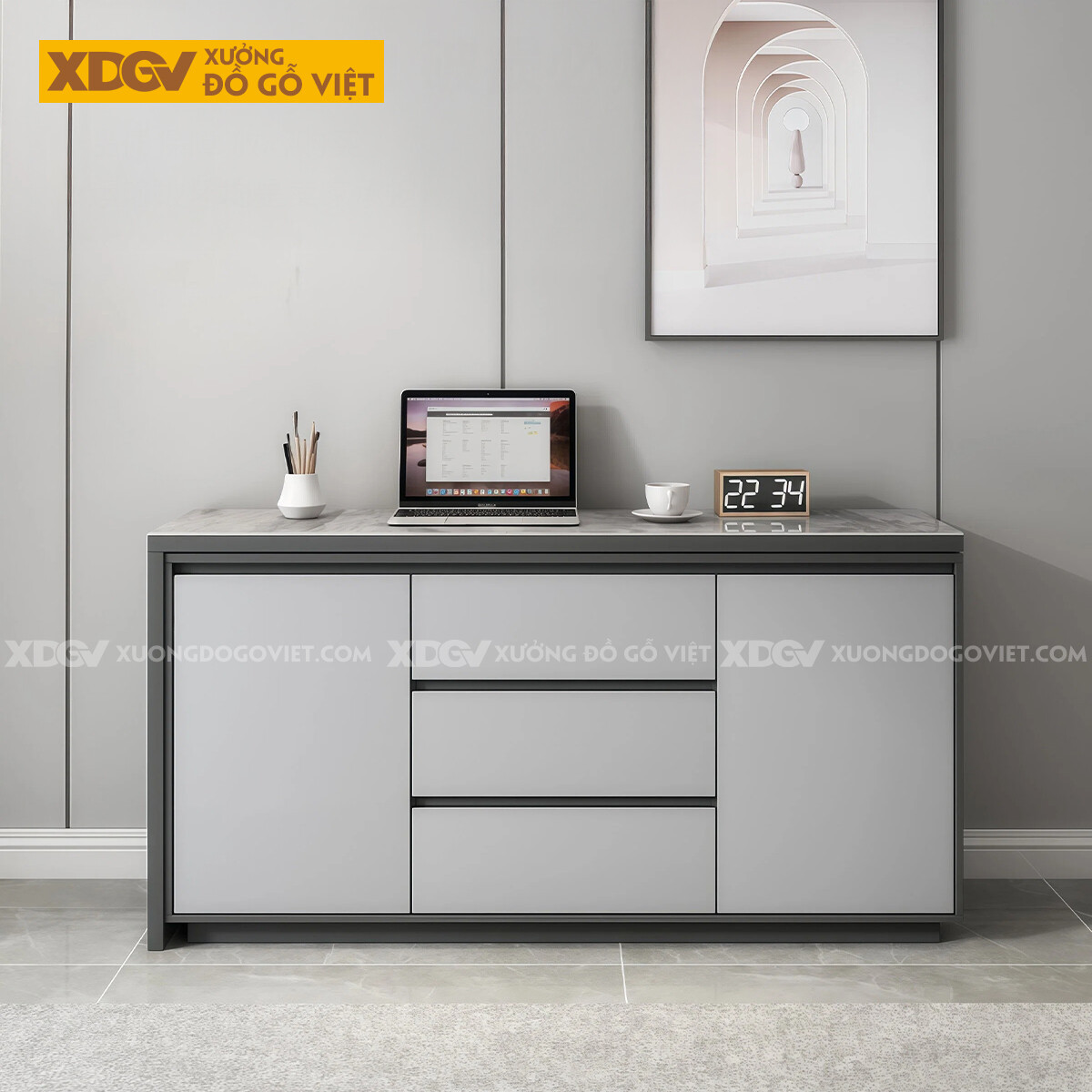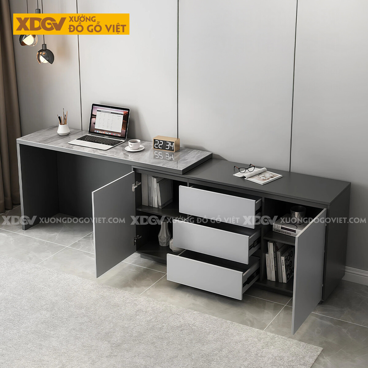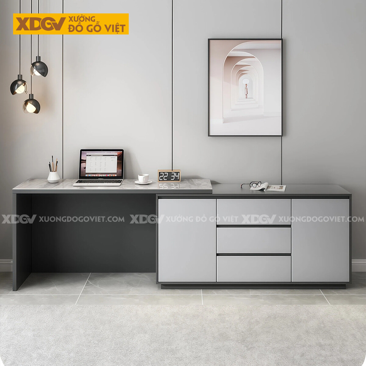 Bàn Làm Việc MDF Mặt Đá Hiện Đại Kèm Tủ Lưu Trữ Đa Năng