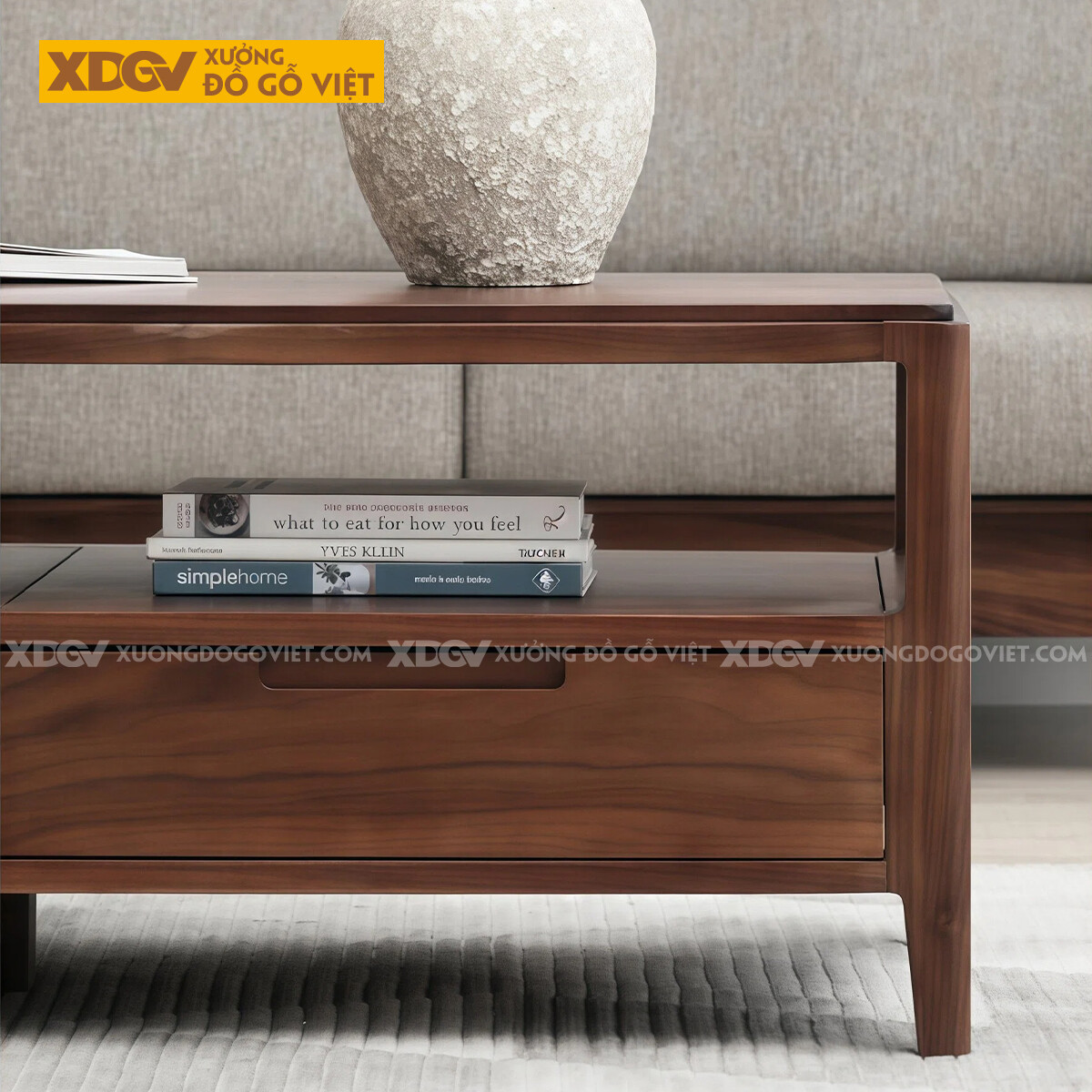 Bàn Sofa Phòng Khách Gỗ Óc Chó 2 Tầng Ngăn Kéo Lưu Trữ Lớn