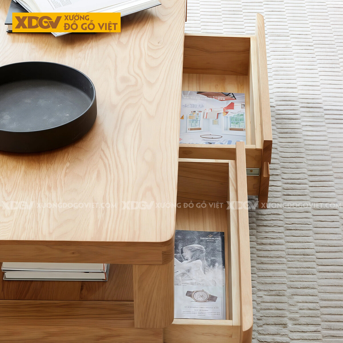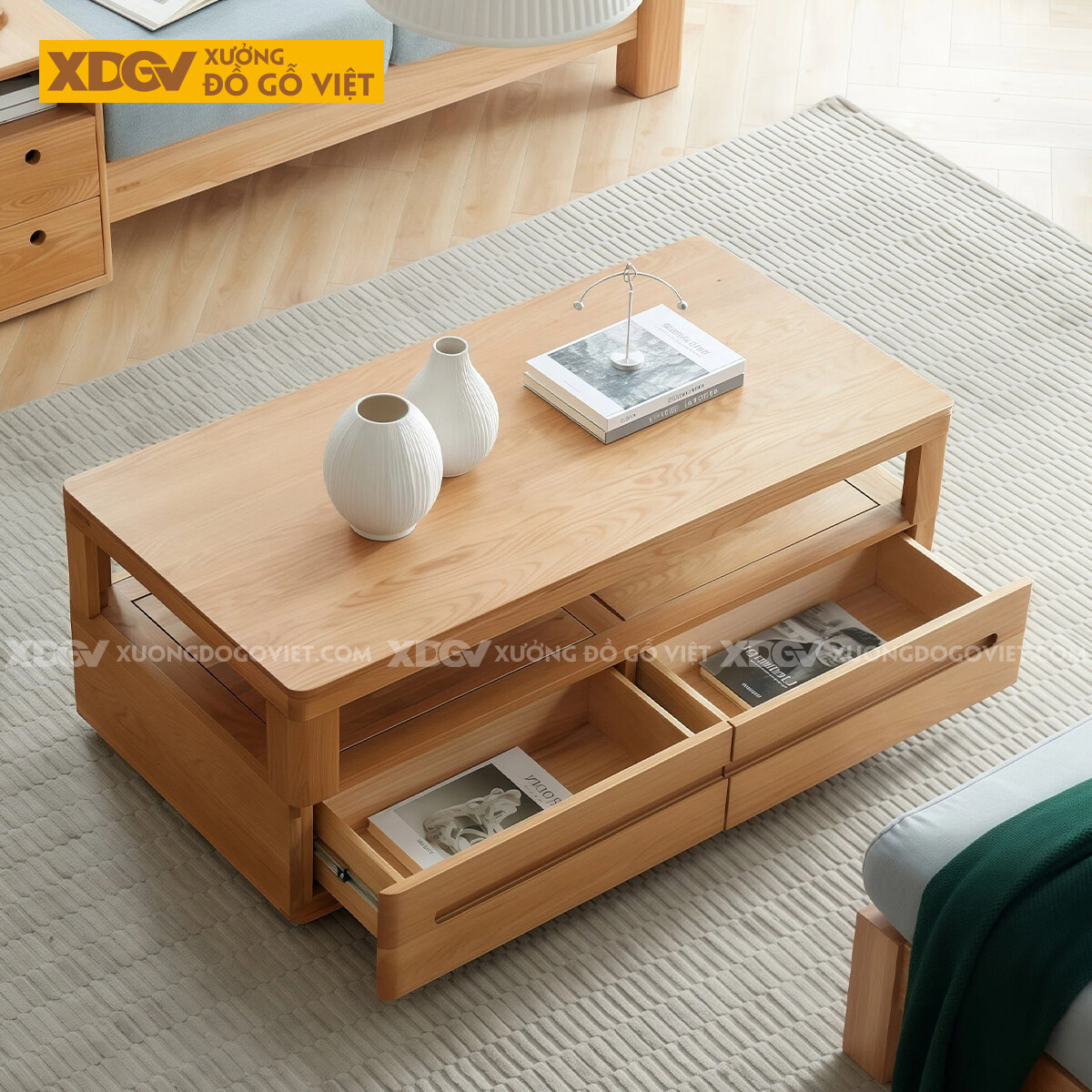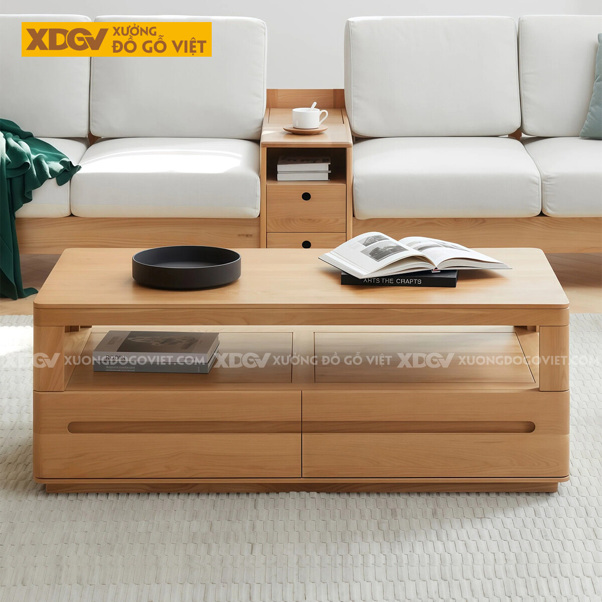 Mẫu Bàn Sofa Phòng Khách Gỗ Sồi Chân Cao Tích Hợp Ngăn Kéo