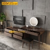 Chất liệu: MDF lõi xanh chống ẩm phủ Melamine chống trầy, chân trụ gỗ cao su.