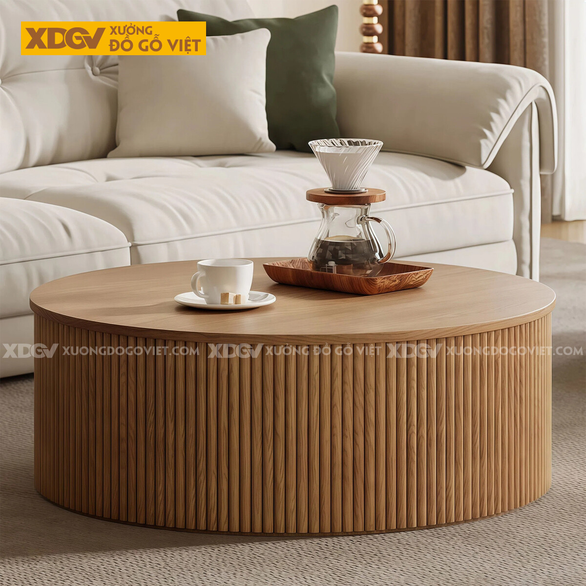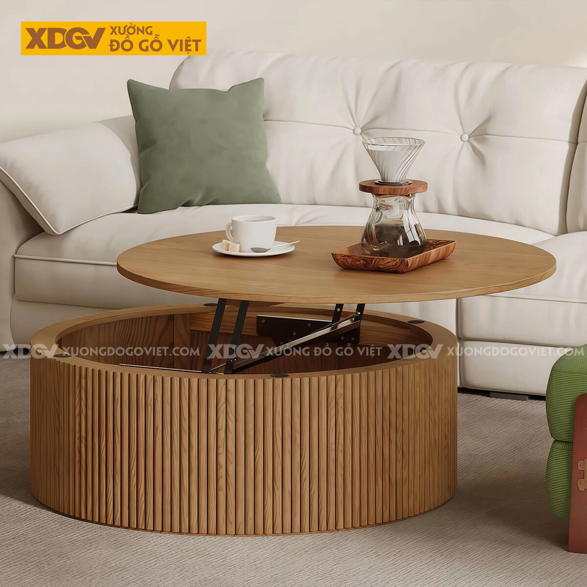 Bàn Tròn Sofa Gỗ Sồi Cơ Chế Nâng Hạ Phối Thanh Dọc Đẹp Mắt