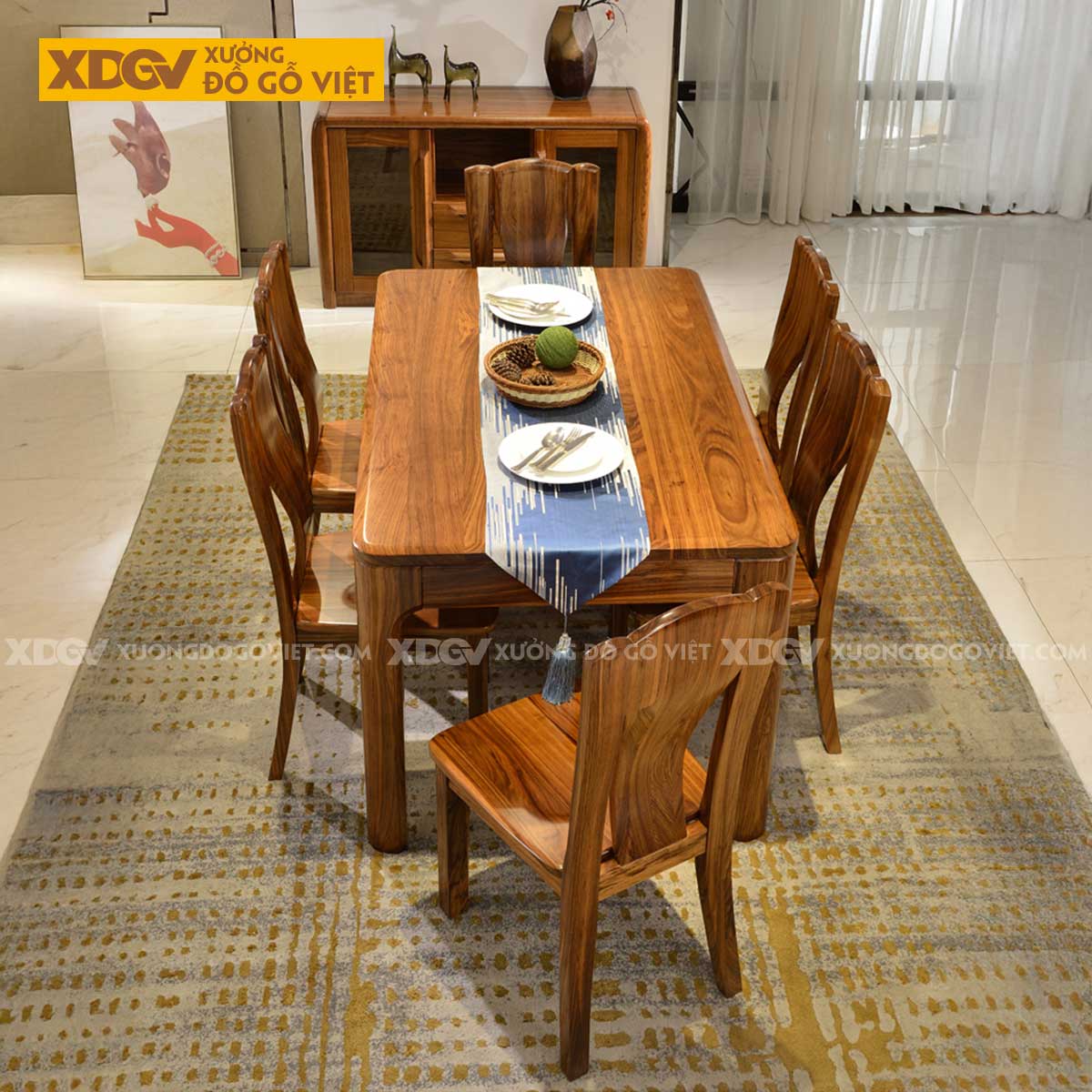 Bộ bàn ăn gỗ Gõ Đỏ được sinh ra để trở thành tâm điểm của những không gian sống đẳng cấp: