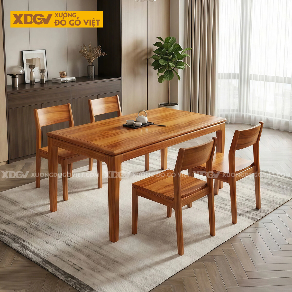 Bộ Bàn Ăn Gỗ Gõ Đỏ 4 Ghế Thiết Kế Đơn Giản Cho Gia ĐìnhBộ Bàn Ăn Gỗ Gõ Đỏ 4 Ghế Thiết Kế Đơn Giản Cho Gia Đình