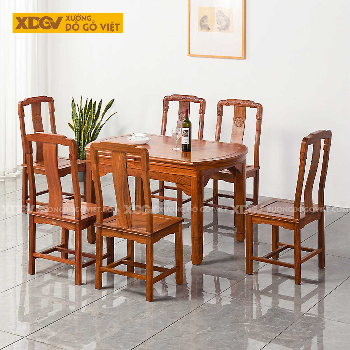 Độ Bền Vĩnh Cửu: Với đặc tính cứng, nặng, chống mối mọt và cong vênh tuyệt vời, bộ bàn ăn "Viên Mãn" không chỉ là một món đồ nội thất, mà là một tài sản có giá trị gia tăng theo thời gian, một di sản để lại cho thế hệ mai sau.