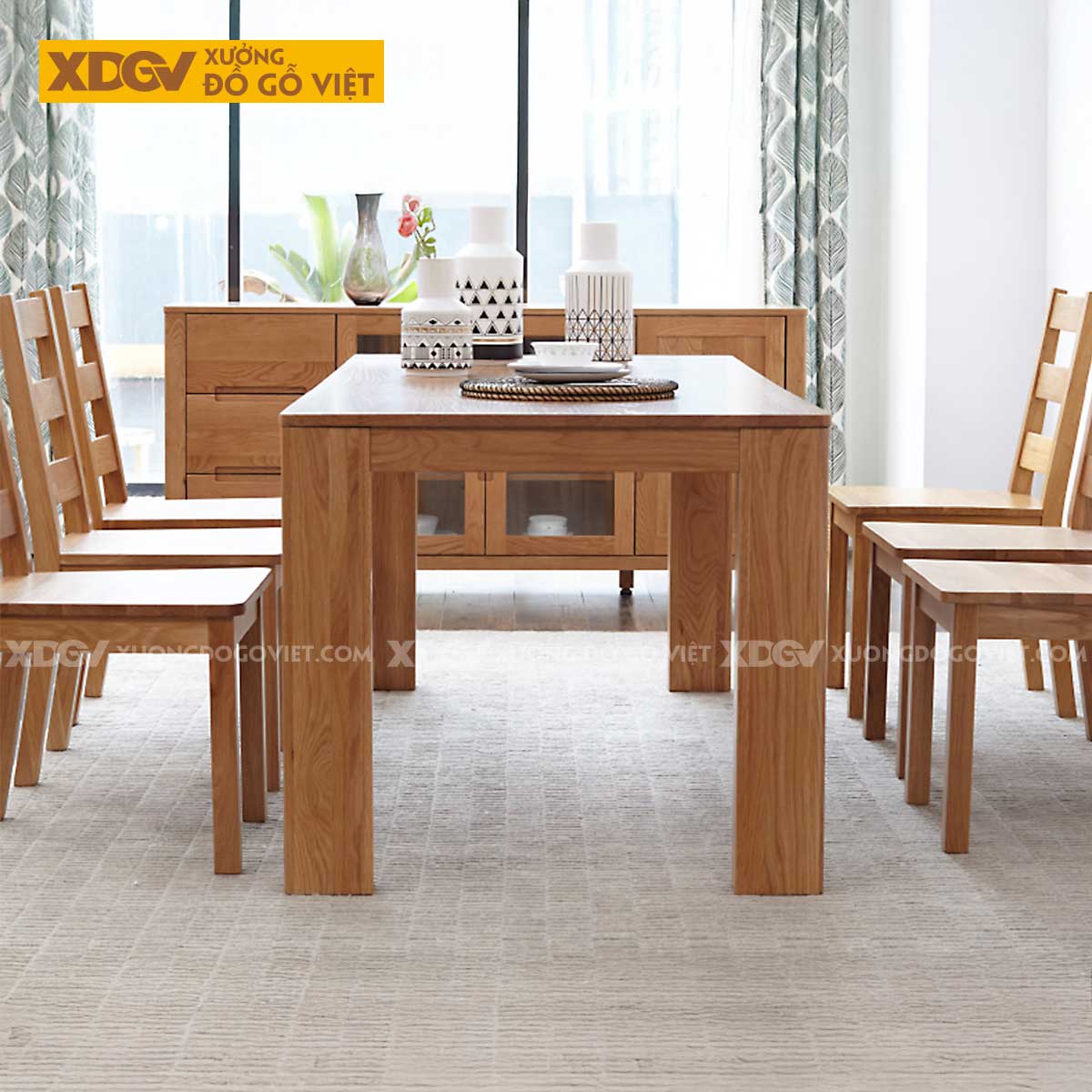 Trung tâm của mọi hoạt động gia đình: Với kích thước lớn và độ bền cao, bàn ăn gỗ sồi tự nhiên không chỉ dành cho các bữa ăn sum họp. Đây còn là nơi lý tưởng để con trẻ học bài, cả nhà cùng tham gia các hoạt động thủ công hay làm việc tại nhà mà không cần lo lắng về việc hư hại.