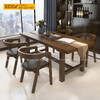 Bàn Ăn Gỗ Sồi Màu Óc Chó Mặt Đá Đen Ghế Chân Khung Hiện...