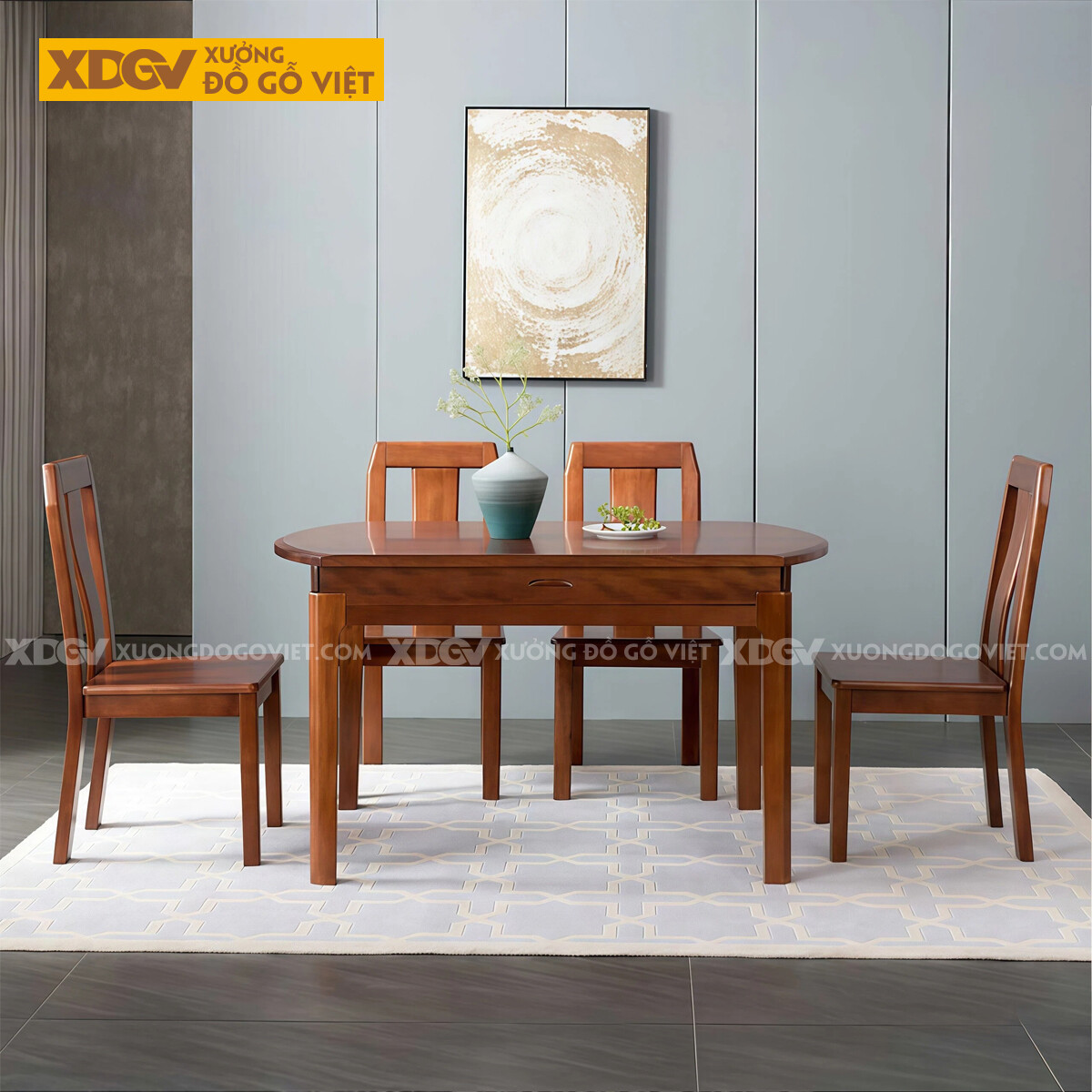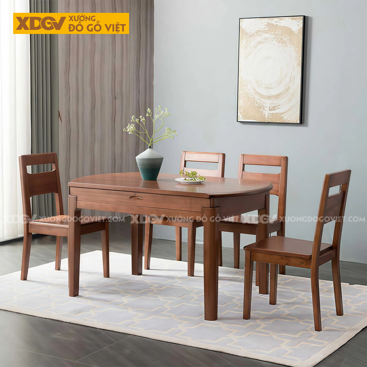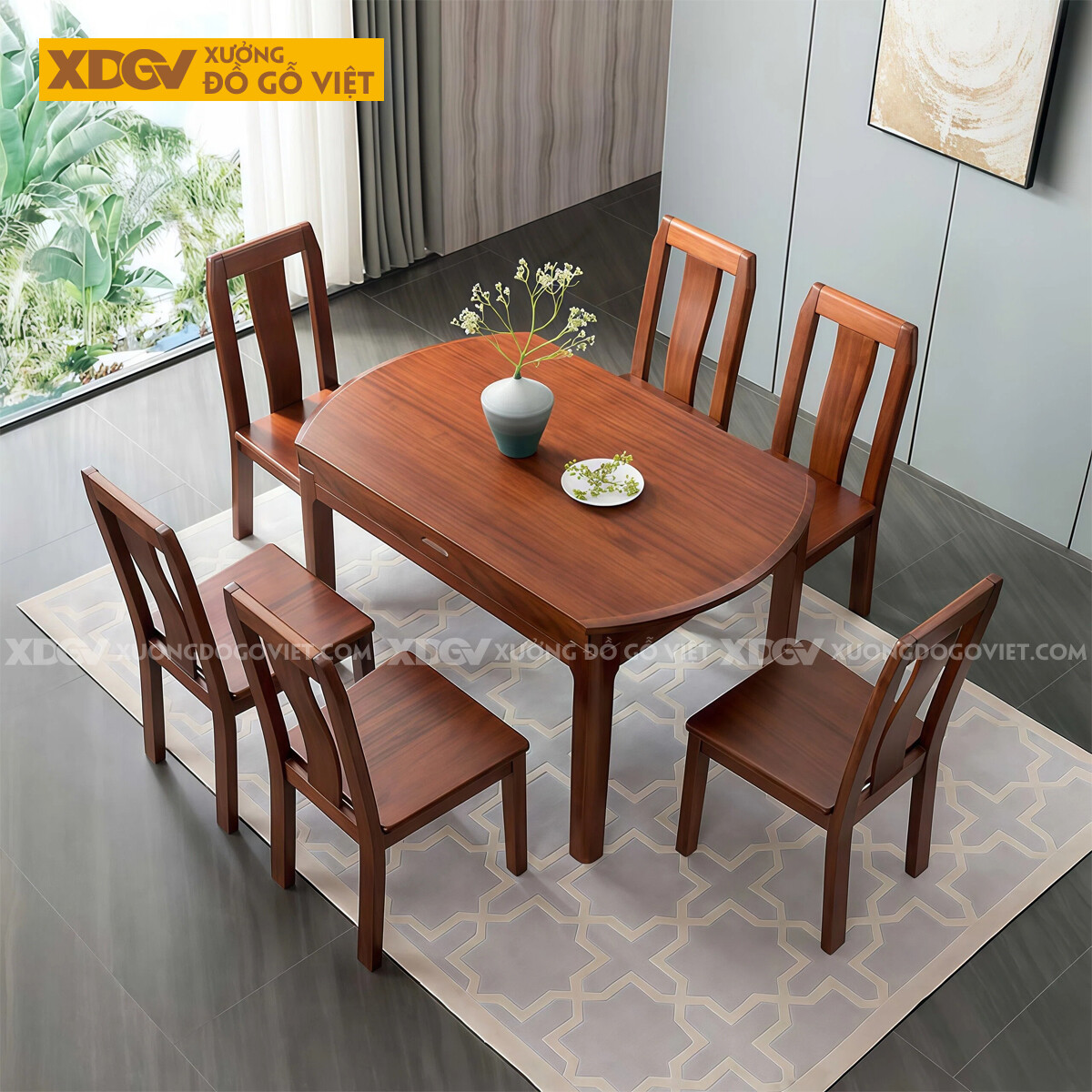 Bộ Bàn Ăn Gỗ Xoan Đào Bàn Tròn Hiện Đại Mở Rộng Thông Minh