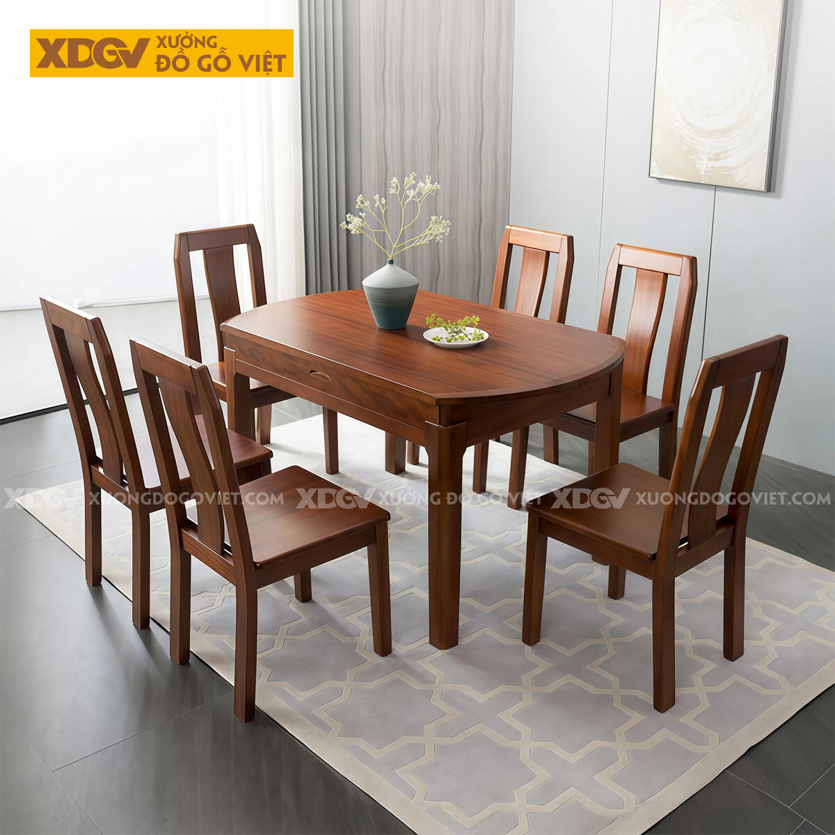 Bộ Bàn Ghế Ăn Gỗ Xoan Đào Tân Cổ Điển Dáng Cao Thanh Thoát