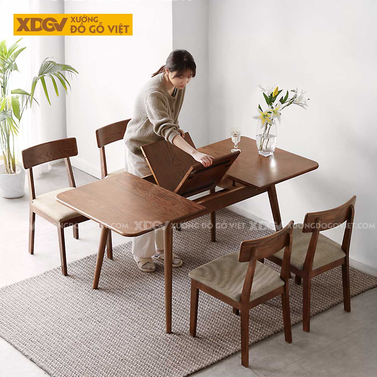 Khi mở rộng (1.6m): Chỉ với vài thao tác đơn giản, chiếc bàn "biến hóa" thành một không gian tiệc rộng rãi cho 6 người, sẵn sàng cho mọi cuộc vui.