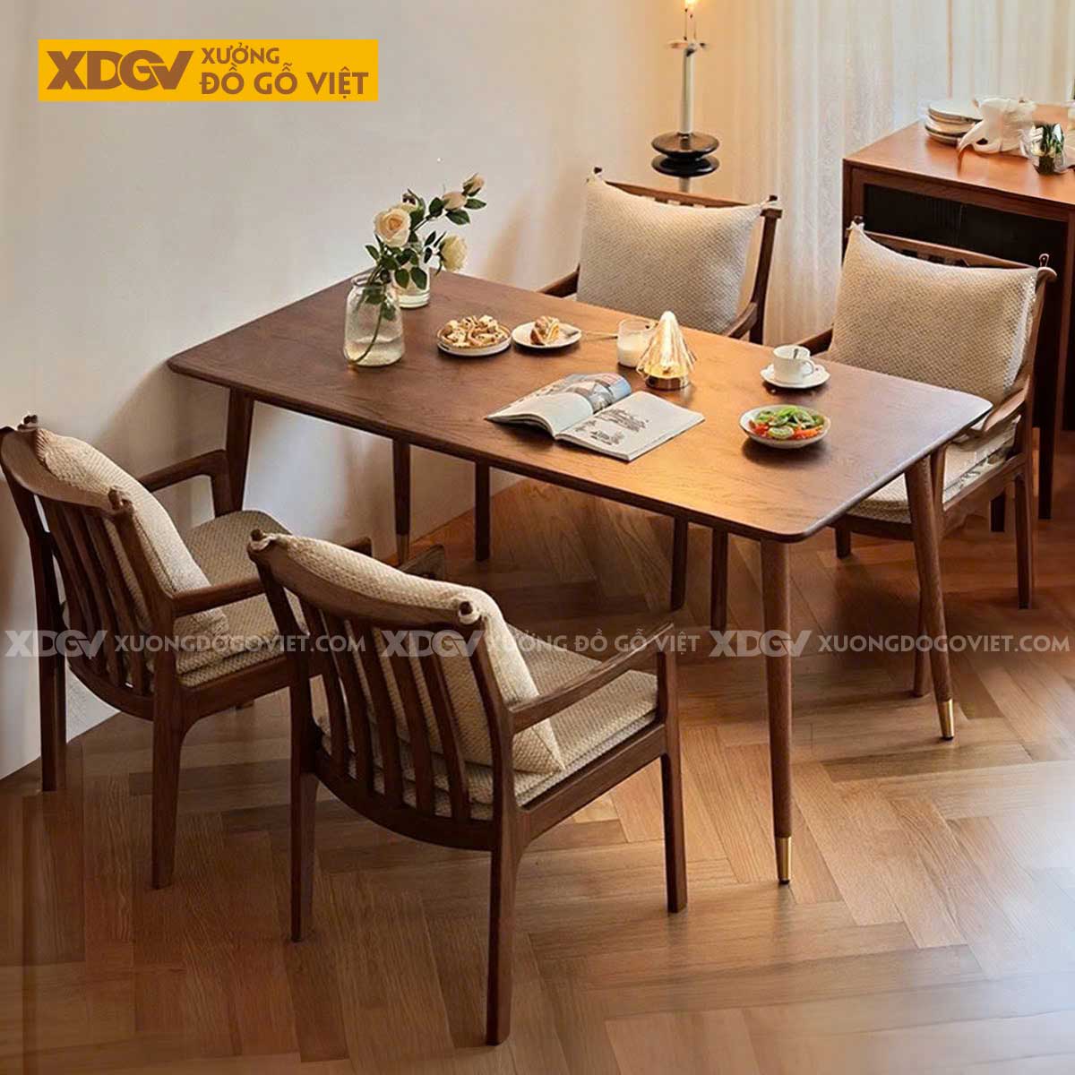 Linh hoạt lựa chọn kích thước: Xưởng Đồ Gỗ Việt hiểu rằng mỗi không gian sống đều khác biệt. Bạn có thể tùy chọn kích thước mong muốn, giúp bạn "may đo" hoàn hảo cho phòng ăn của mình