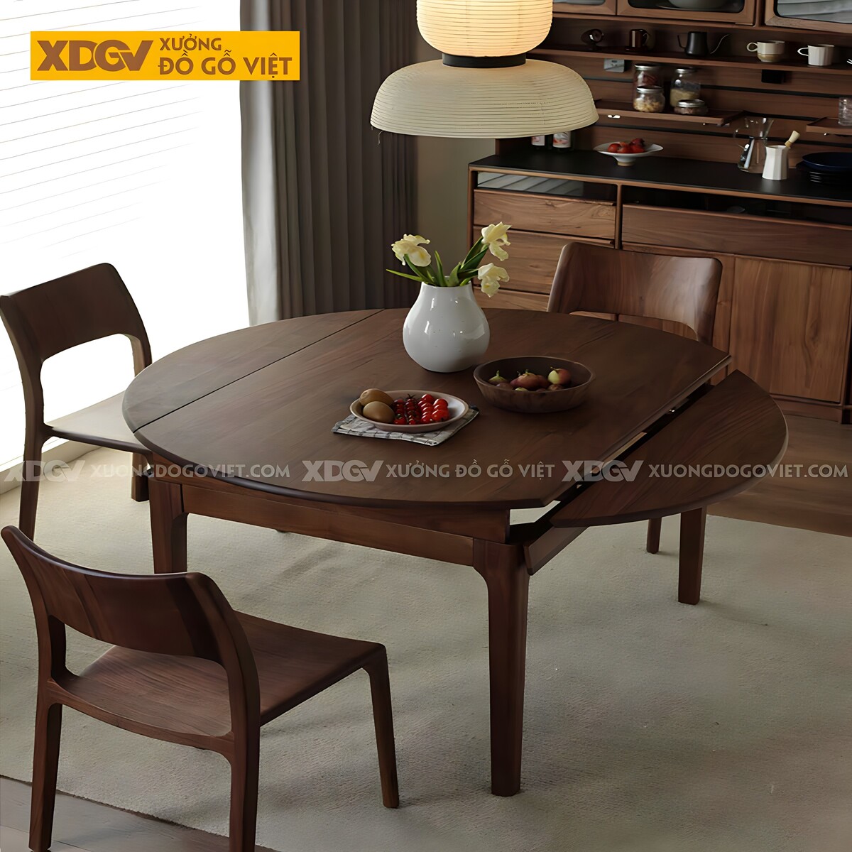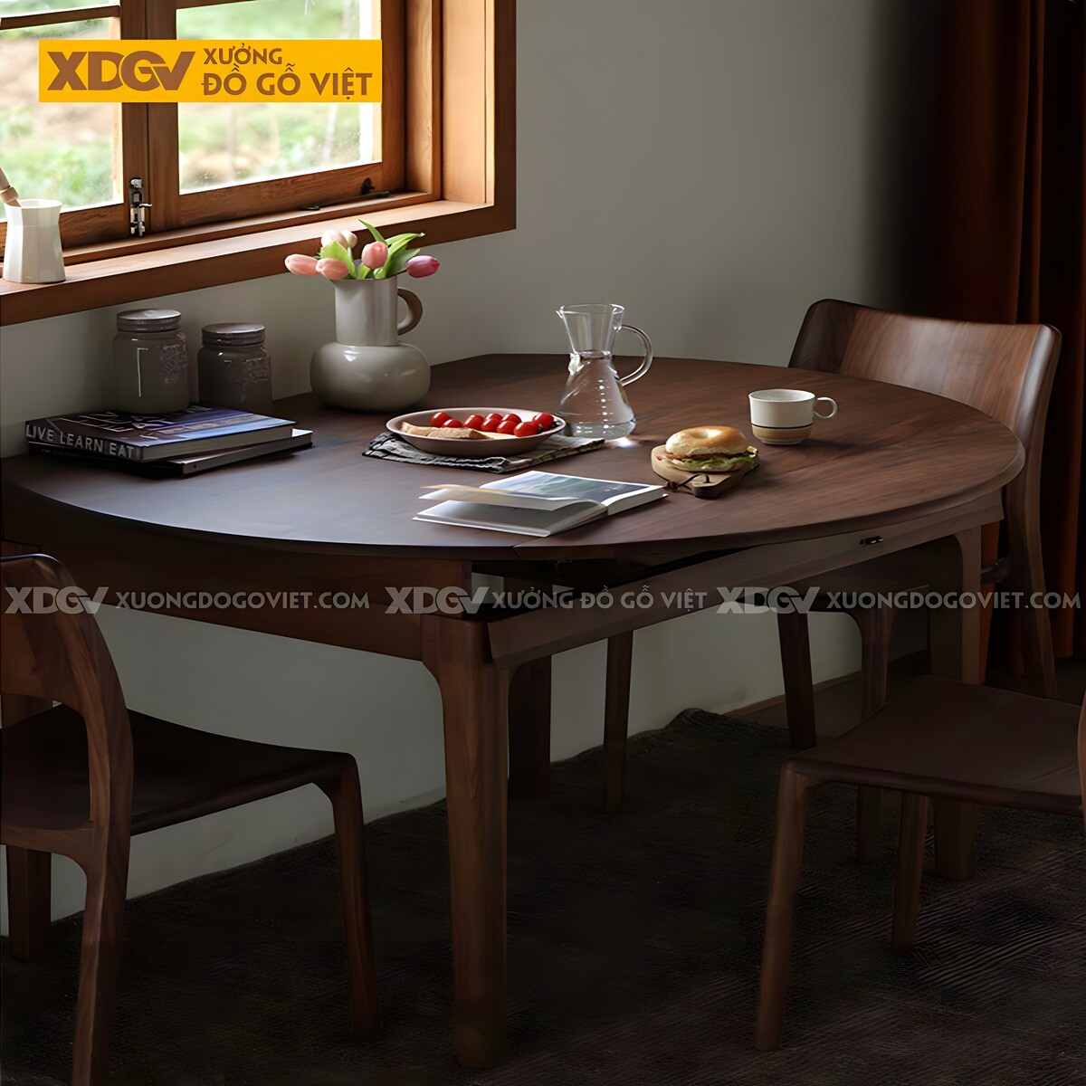 Hơn cả một chiếc bàn, đây là một giải pháp cho không gian sống. Hãy tưởng tượng, những bữa cơm gia đình hàng ngày trở nên ấm cúng bên chiếc bàn nhỏ xinh. Và rồi cuối tuần, khi bạn bè và người thân ghé thăm, chiếc bàn được mở rộng thành hình tròn hoàn hảo.