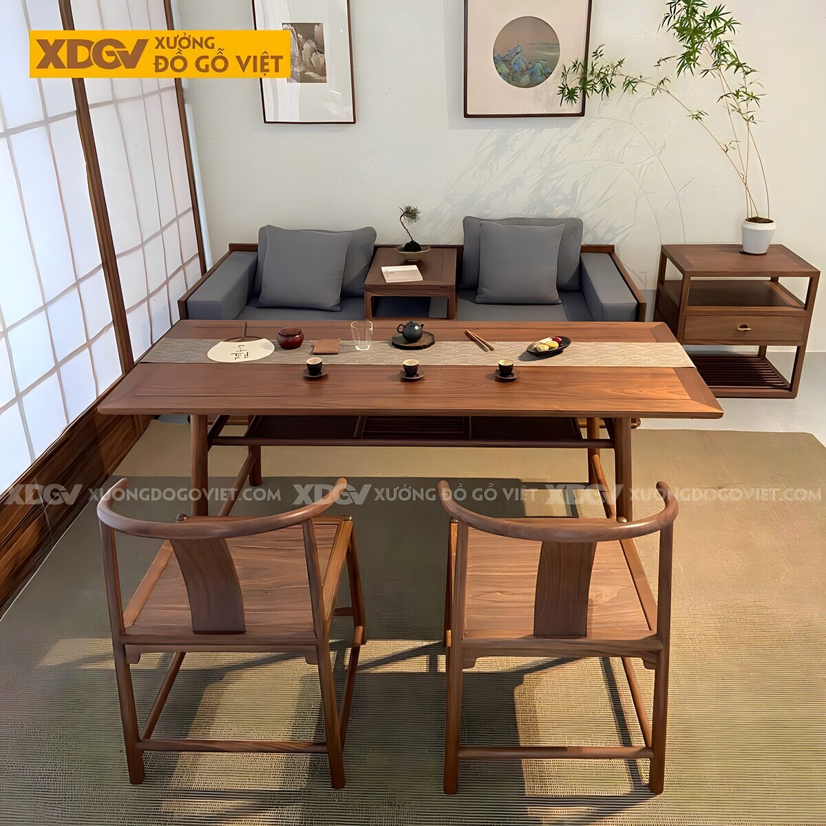 Bộ sản phẩm này là định nghĩa hoàn hảo cho phong cách Thiền (Zen) và phong cách Á Đông đương đại, nơi vẻ đẹp tối giản, sự tĩnh tại và công năng được đặt lên hàng đầu. Đây không chỉ là những món đồ nội thất riêng lẻ, mà là một tổng thể được thiết kế để tạo ra một "không gian trà thất" trang trọng và thư thái.