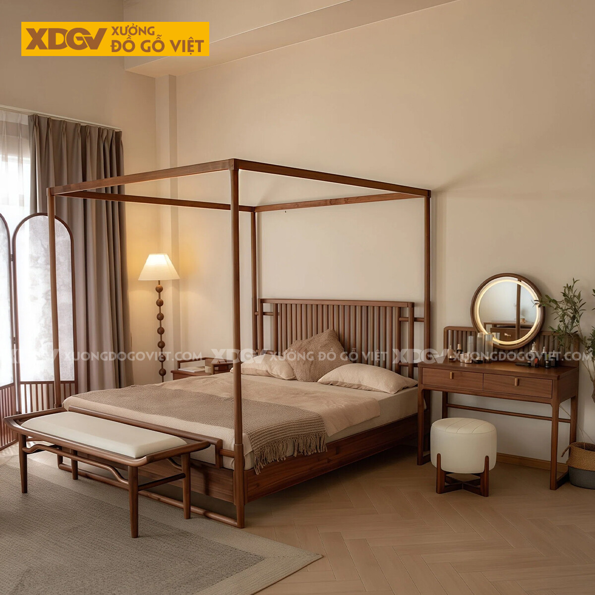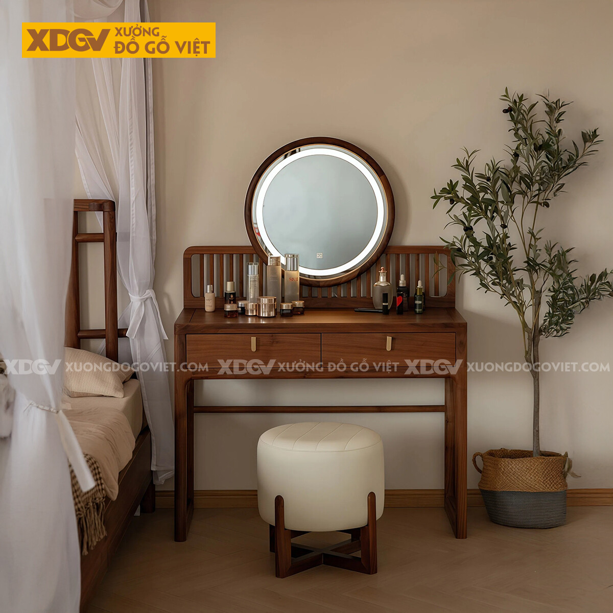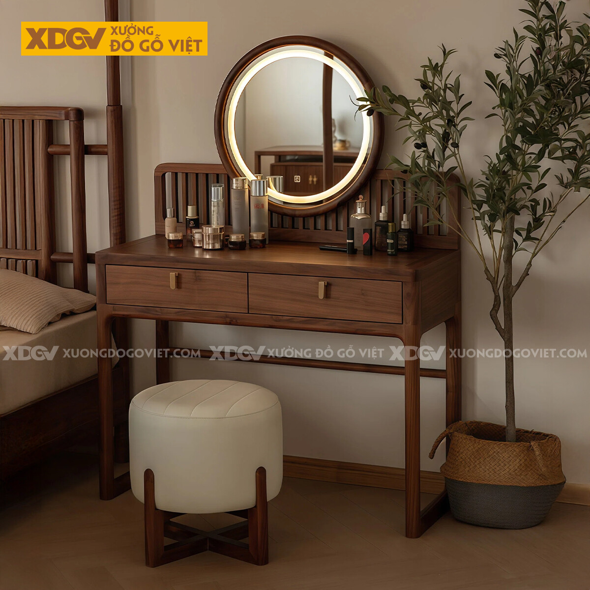 Bộ Bàn Trang Điểm Để Phòng Ngủ Gỗ Óc Chó Vách Nan Trang Trí