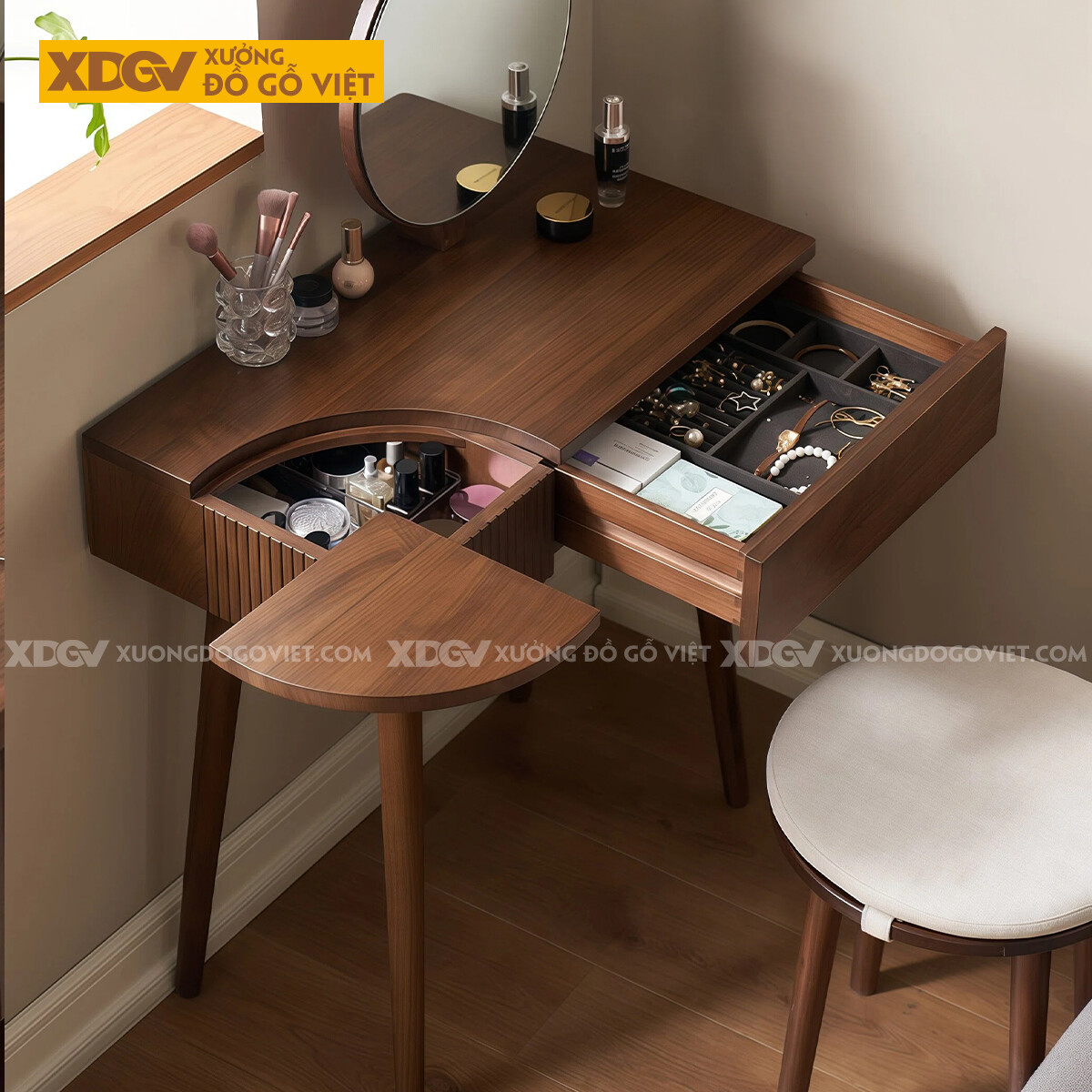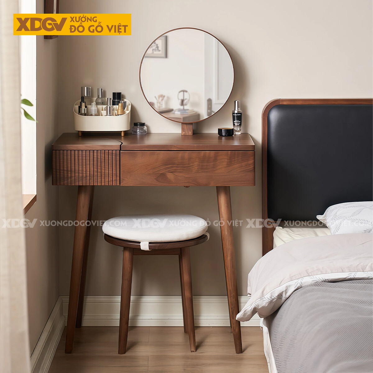 Bộ Bàn Trang Điểm Hiện Đại Gỗ Óc Chó Kết Hợp Piton Nâng Hạ