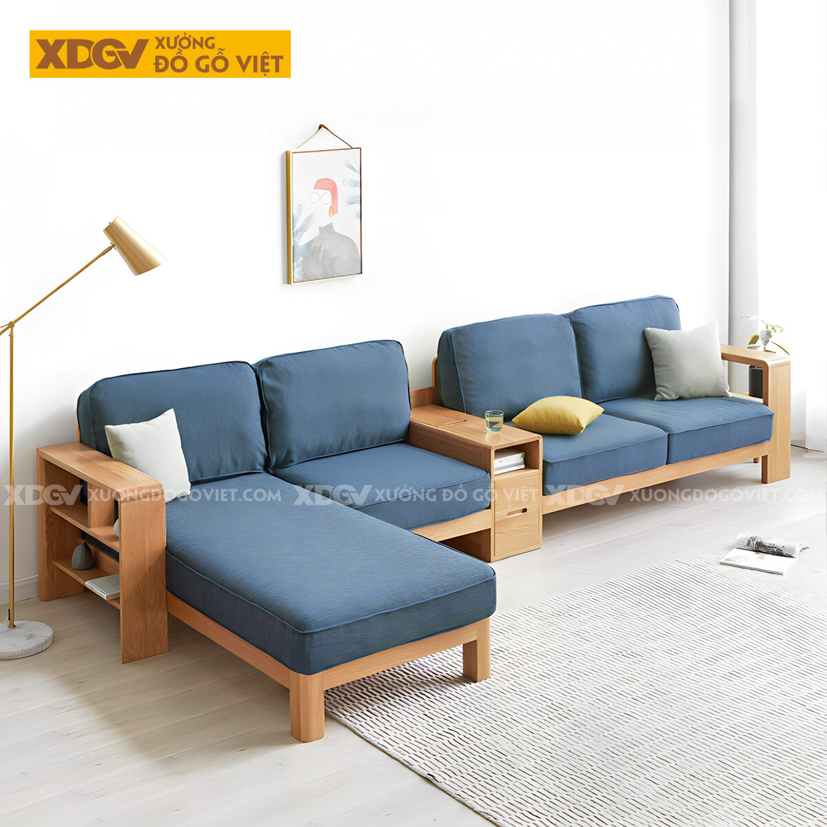 Bộ Sofa Gia Đình Gỗ Sồi Góc L Tay Vịn To Tích Hợp Ngăn Kéo