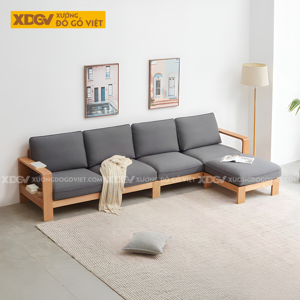 Sofa Gỗ Sồi 4 Món Tay Bo Góc L Cho Nhà Phố Chung Cư