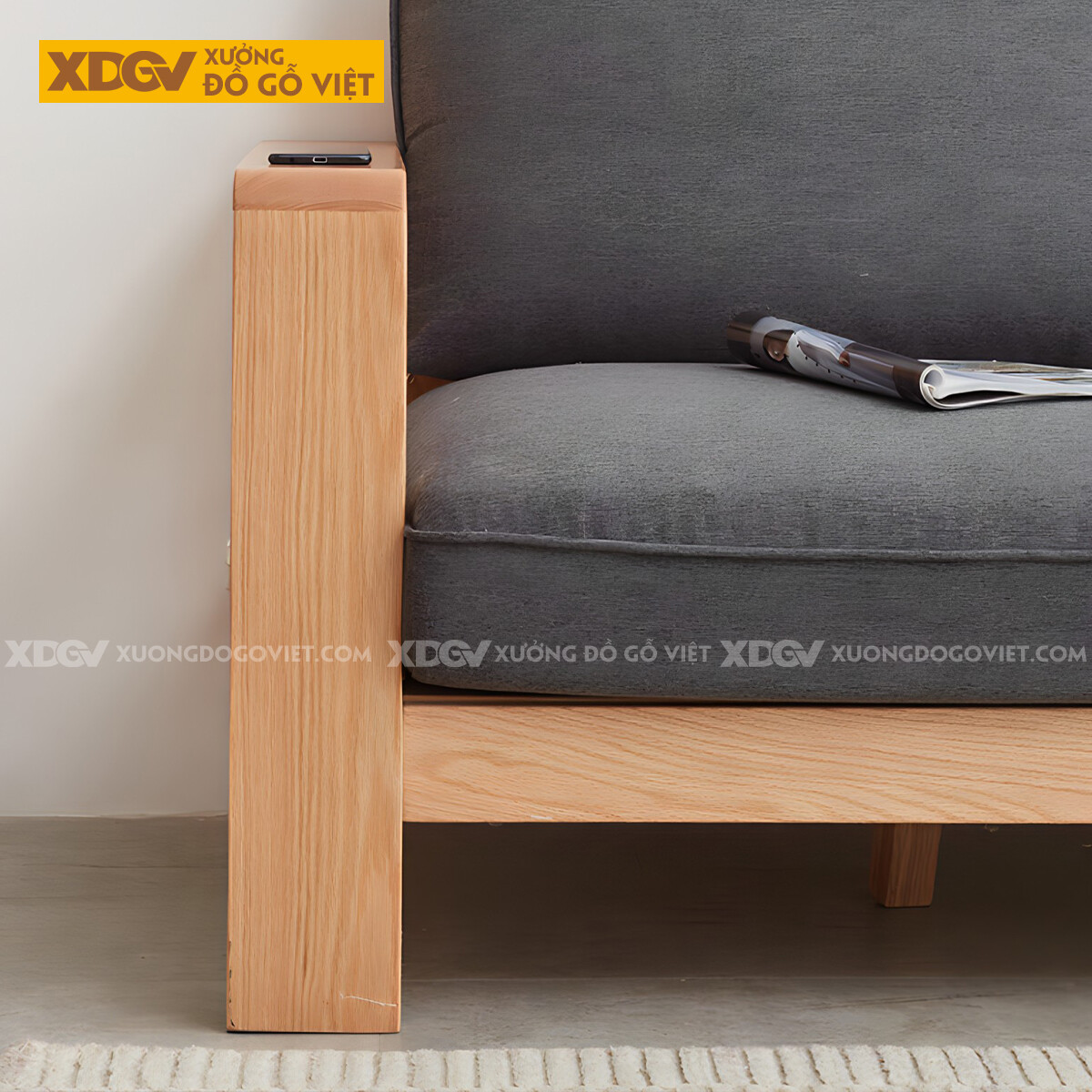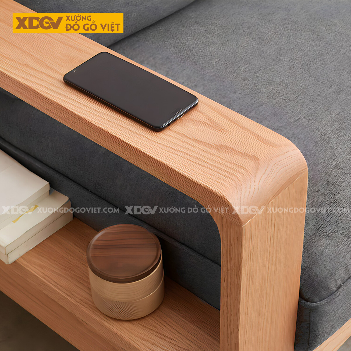 Mẫu Sofa Gỗ Sồi Hiện Đại Tay Bo Góc Tròn Tích Hợp Ngăn Chứa