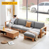Bộ Sofa Gia Đình Gỗ Sồi Góc L Tay Vịn To Tích Hợp Ngăn Kéo