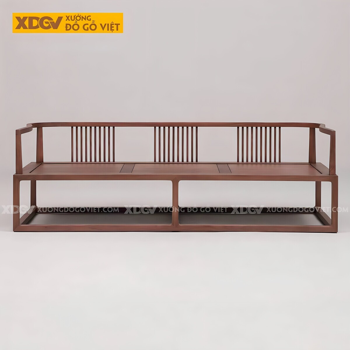 Màu sắc: Tông màu chủ đạo là màu nâu tự nhiên của gỗ óc chó kết hợp với màu xám/ghi đậm của đệm và gối. Sự kết hợp này tạo ra một bảng màu trung tính, sang trọng, dễ dàng phối hợp với các không gian nội thất khác nhau.