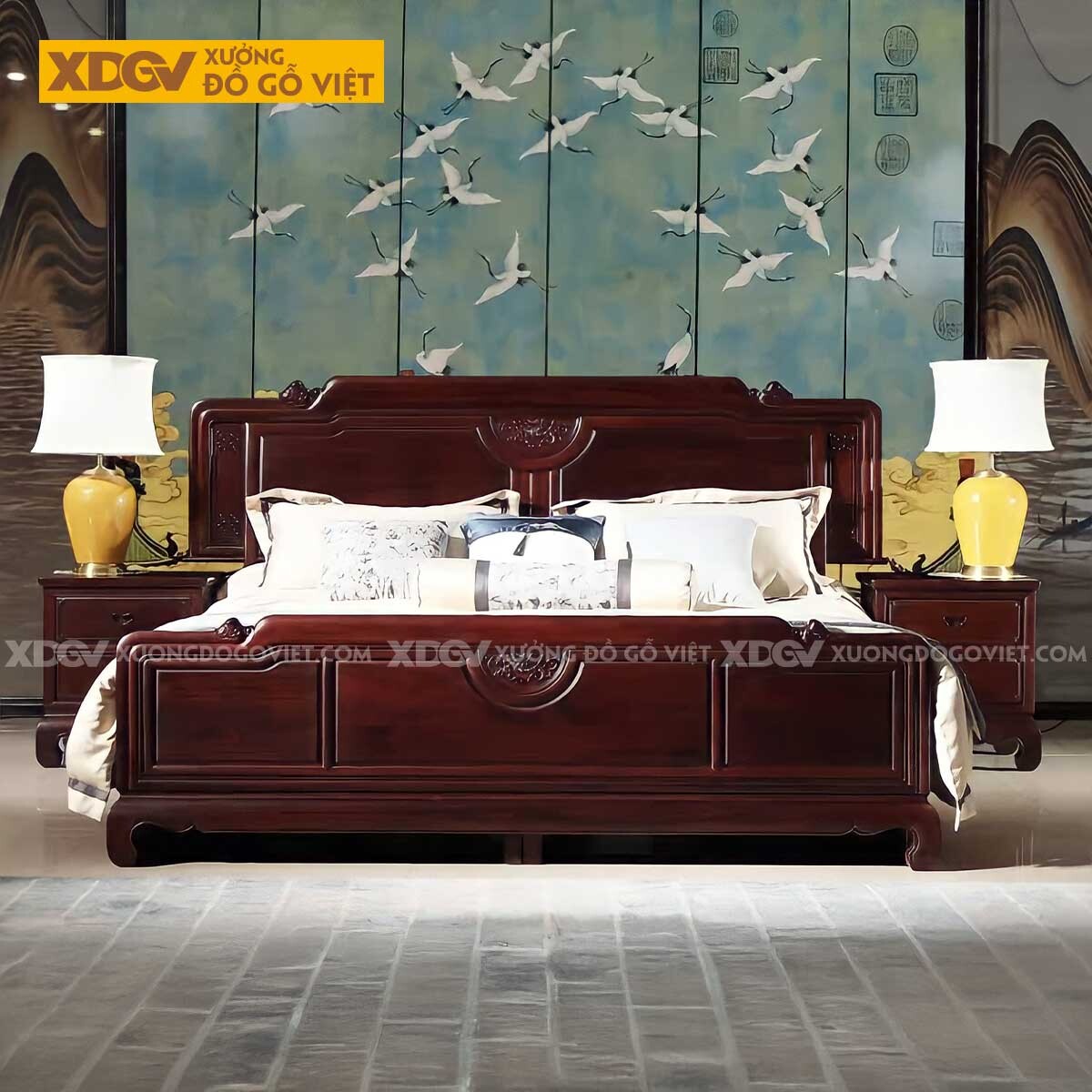 Giường Gỗ Căm Xe Tân Cổ Điển Họa Tiết Chạm Khắc Tinh Xảo