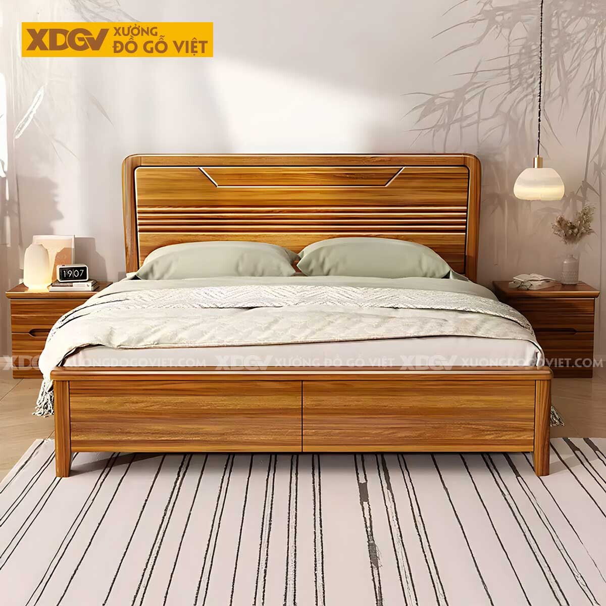 Giường Ngủ Gỗ Lim Tự Nhiên Dày Dặn Đầu Uốn Cong Kẻ Rãnh Đẹp
