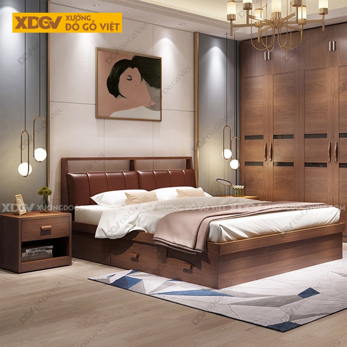 Giường Ngủ Gỗ MDF Công Nghiệp X7981