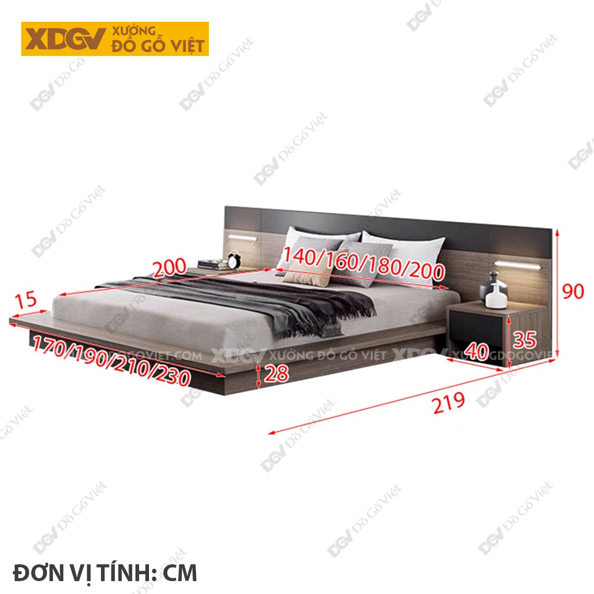 Giường Ngủ Gỗ MDF Công Nghiệp X4420