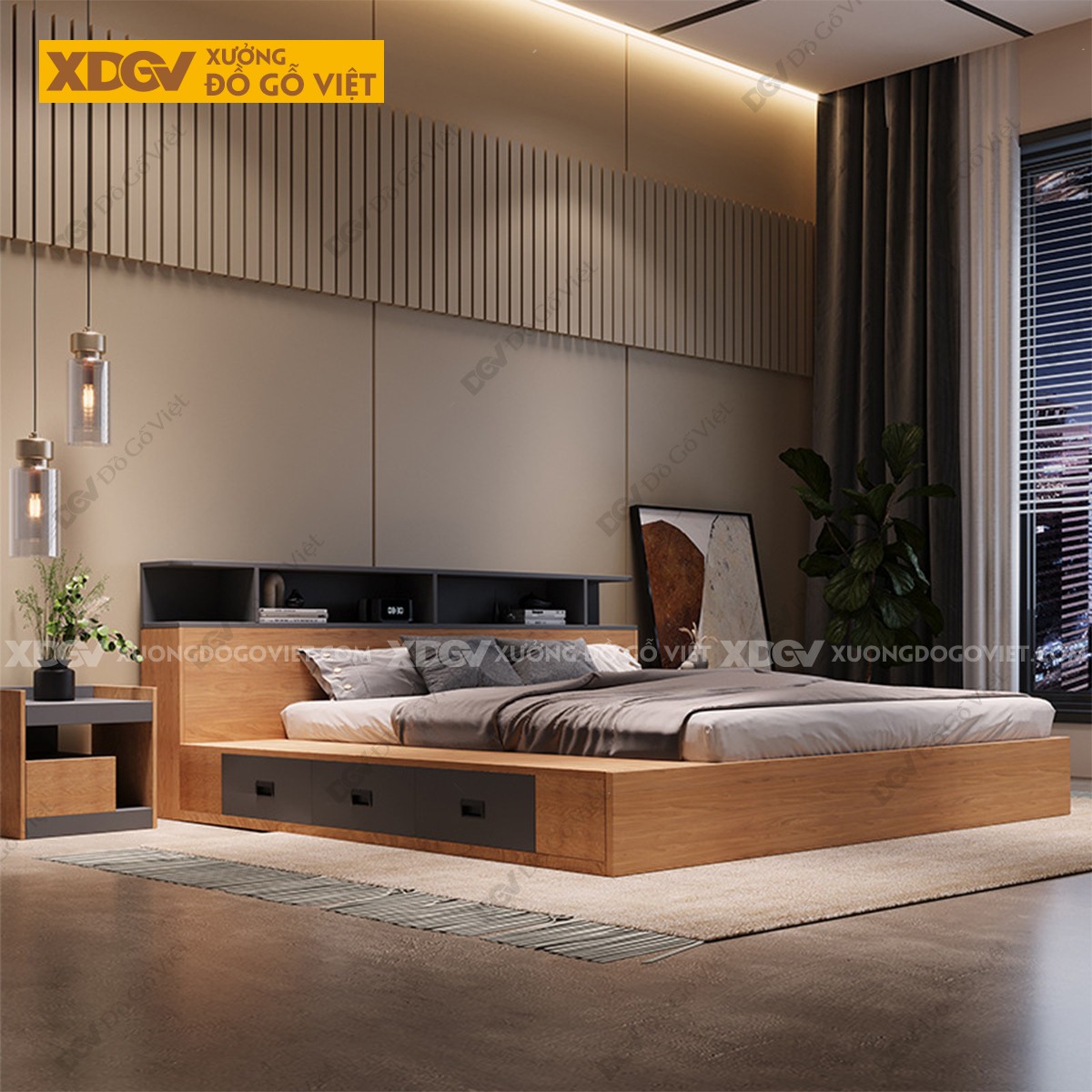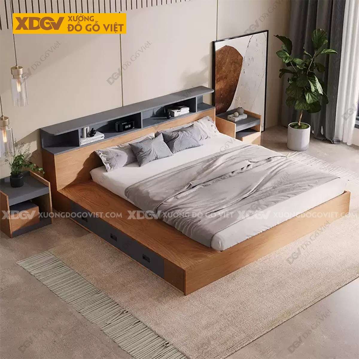 Giường Ngủ Gỗ MDF Công Nghiệp X7944
