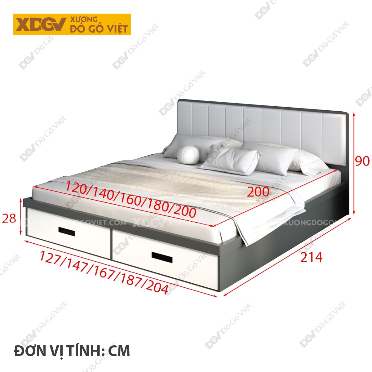 Giường Ngủ Gỗ MDF Công Nghiệp X4420