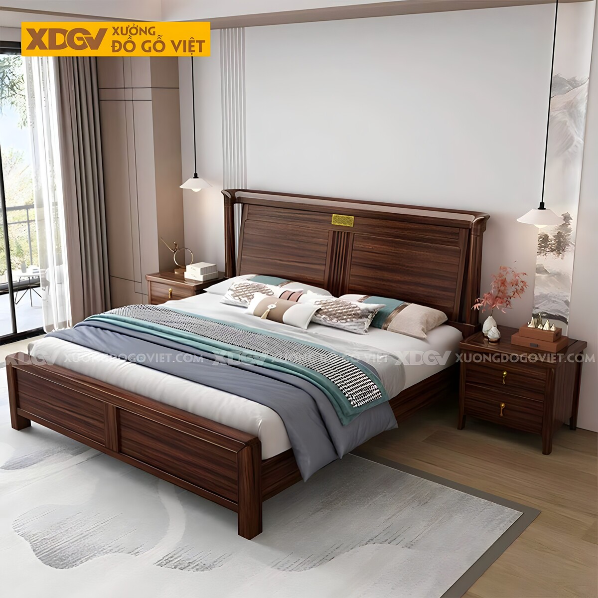 Giường Ngủ Gỗ Óc Chó Hiện Đại Đa Năng Đầu Kẻ Chỉ Dọc...