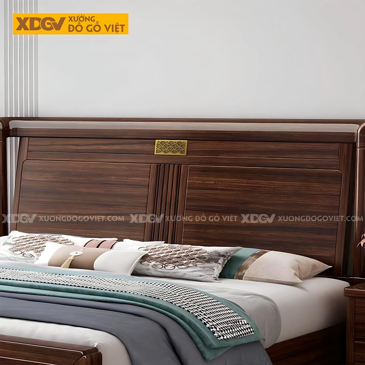 Giường Ngủ Gỗ Óc Chó Á Đông Đầu Thiết Kế Cổ Điển Vương Gia