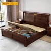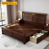 Giường Ngủ Gỗ Óc Chó Đuôi Hệ Ngăn Kéo Đầu Bọc Nệm Có Kệ