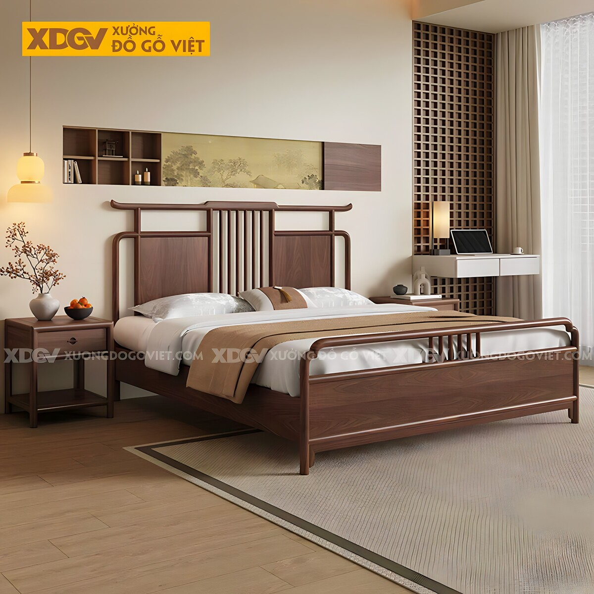 Giường Ngủ Gỗ Óc Chó Á Đông Tối Giản Đầu Dáng Cung Điện