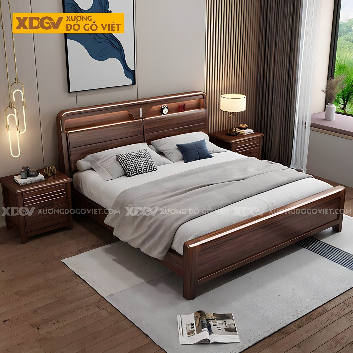 Giường Ngủ Gỗ Óc Chó Hiện Đại Đa Năng Đầu Kẻ Chỉ Dọc...