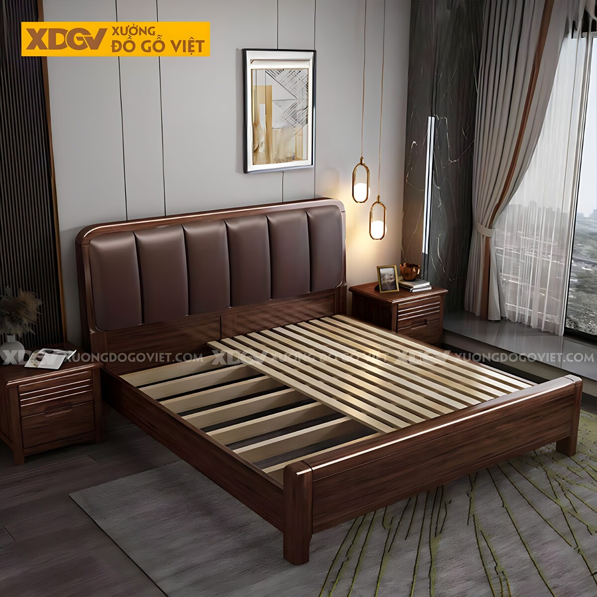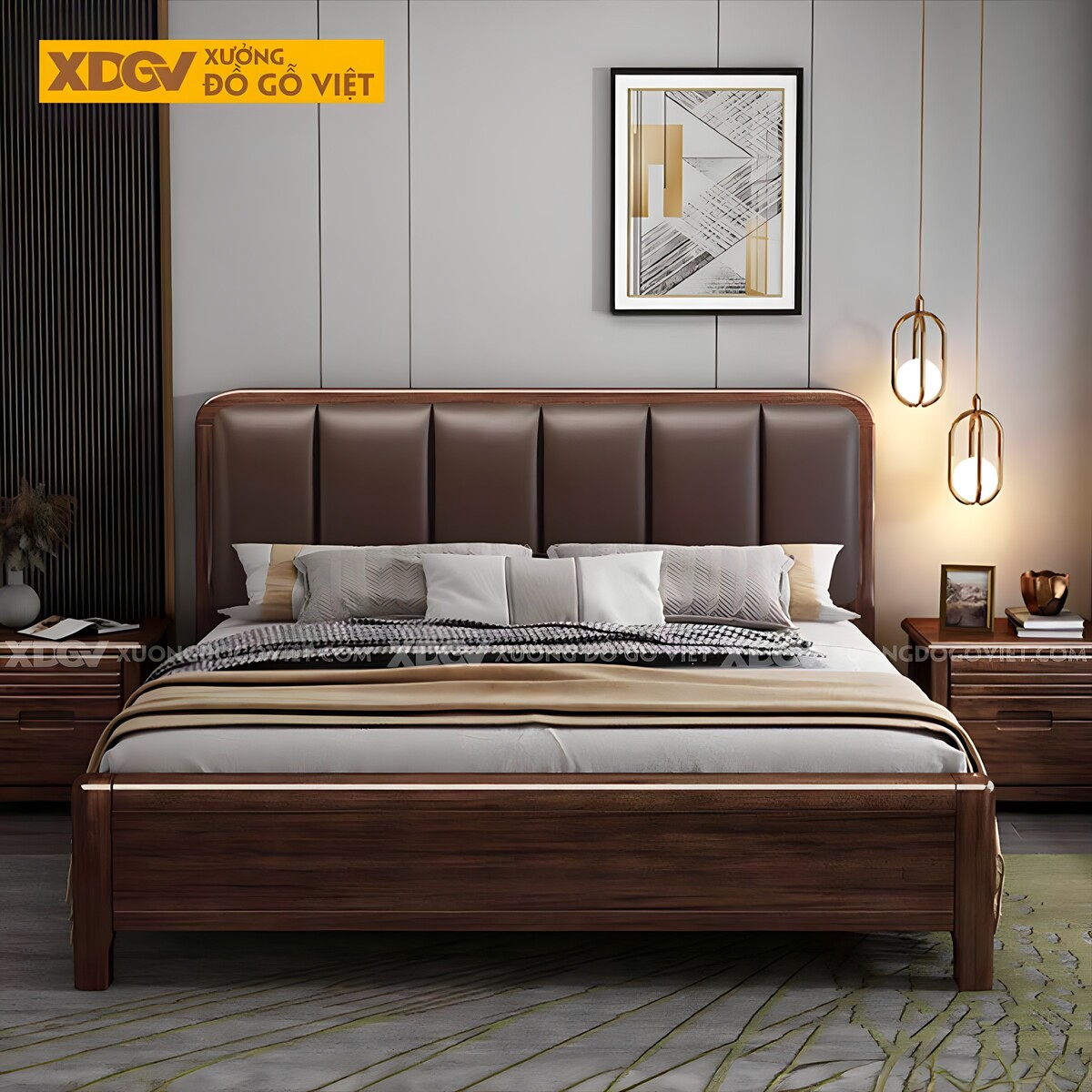 Giường Ngủ Gỗ Óc Chó Hiện Đại Đa Năng Đầu Kẻ Chỉ Dọc...