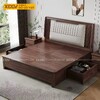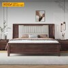 Giường Ngủ Gỗ Óc Chó Đuôi Hệ Ngăn Kéo Đầu Bọc Nệm Có Kệ