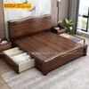 Giường Ngủ Gỗ Óc Chó Đuôi Hệ Ngăn Kéo Đầu Bọc Nệm Có Kệ