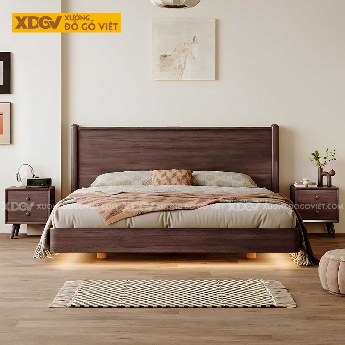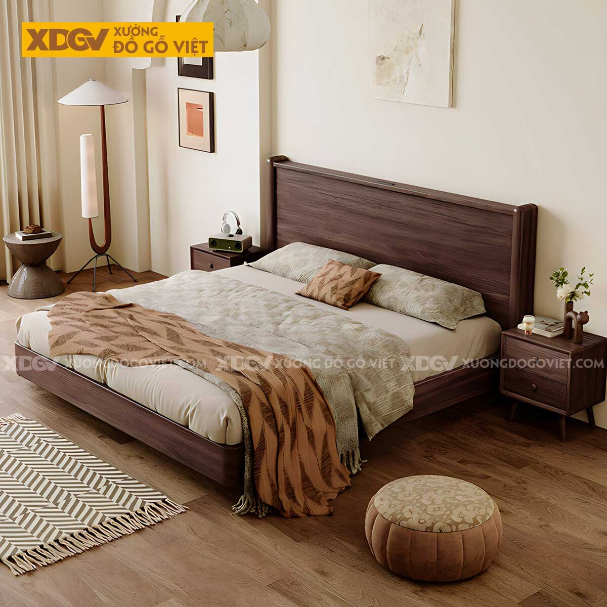 Giường Ngủ Gỗ Óc Chó Hiện Đại Đa Năng Đầu Kẻ Chỉ Dọc...