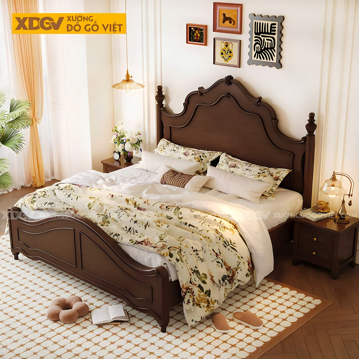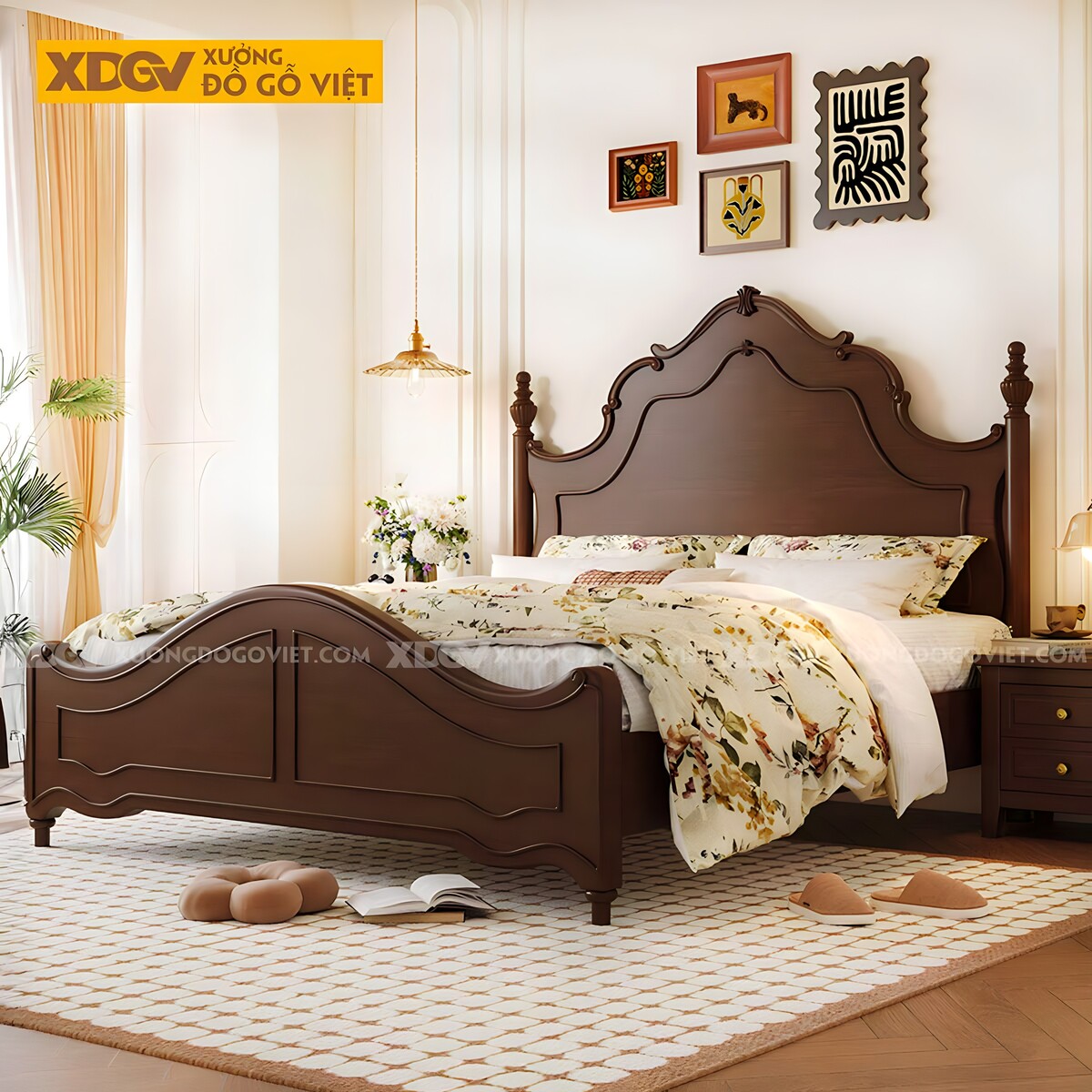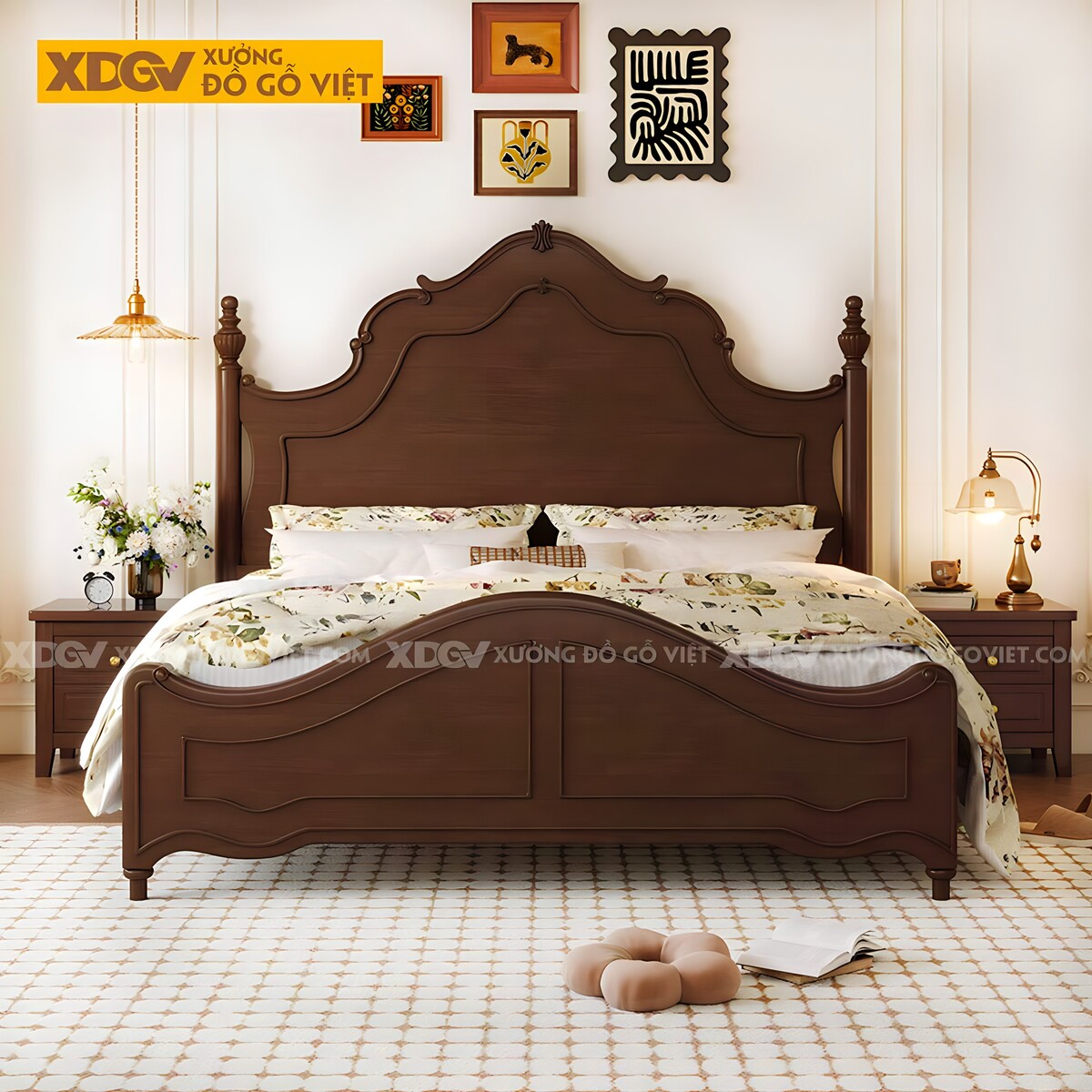 Giường Ngủ Óc Chó Cổ Điển Châu Âu Sang Trọng Đầu Vương Miện